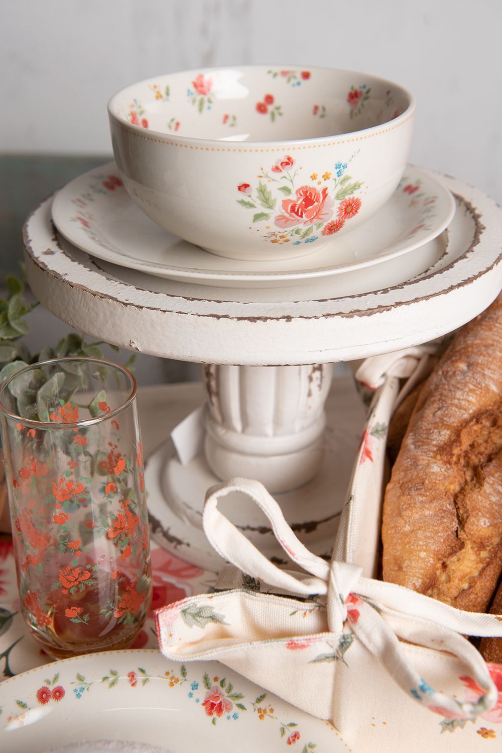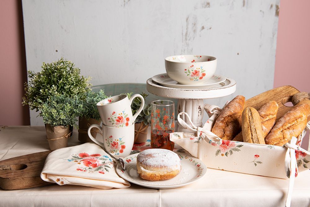 Clayre & Eef Clayre & Eef Frühstücksteller Ø 20 cm Beige Rosa Keramik Rosen (Gr. Ø 20x2 cm)