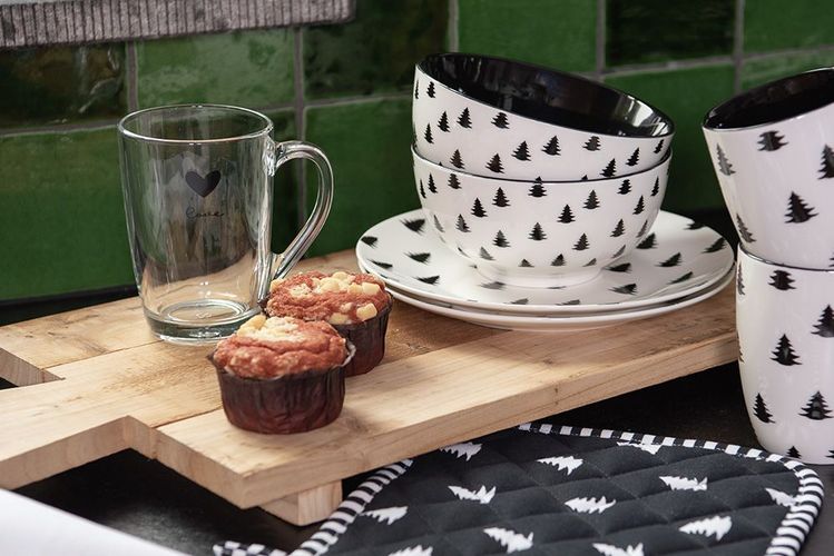 Clayre & Eef Clayre & Eef Frühstücksteller Ø 20 cm Beige Schwarz Porzellan Weihnachtsbaum