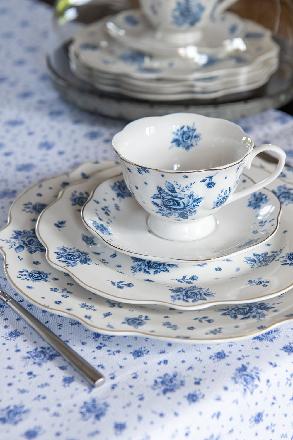 Clayre & Eef Clayre & Eef Frühstücksteller Ø 20 cm Weiß Blau Porzellan Rosen (Gr. Ø 20x2 cm)