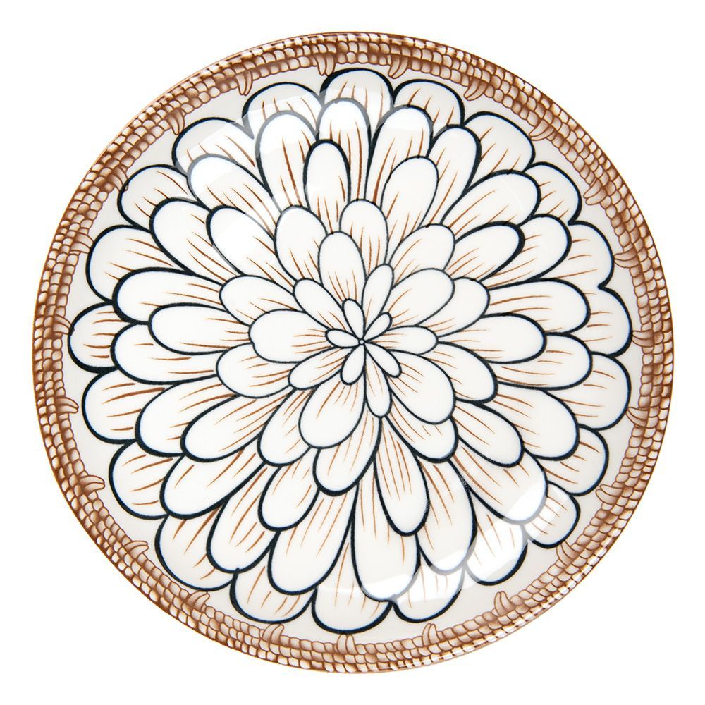 Clayre & Eef Clayre & Eef Frühstücksteller Ø 21x3 cm Weiß Braun Keramik (Gr. Ø 21x3 cm)