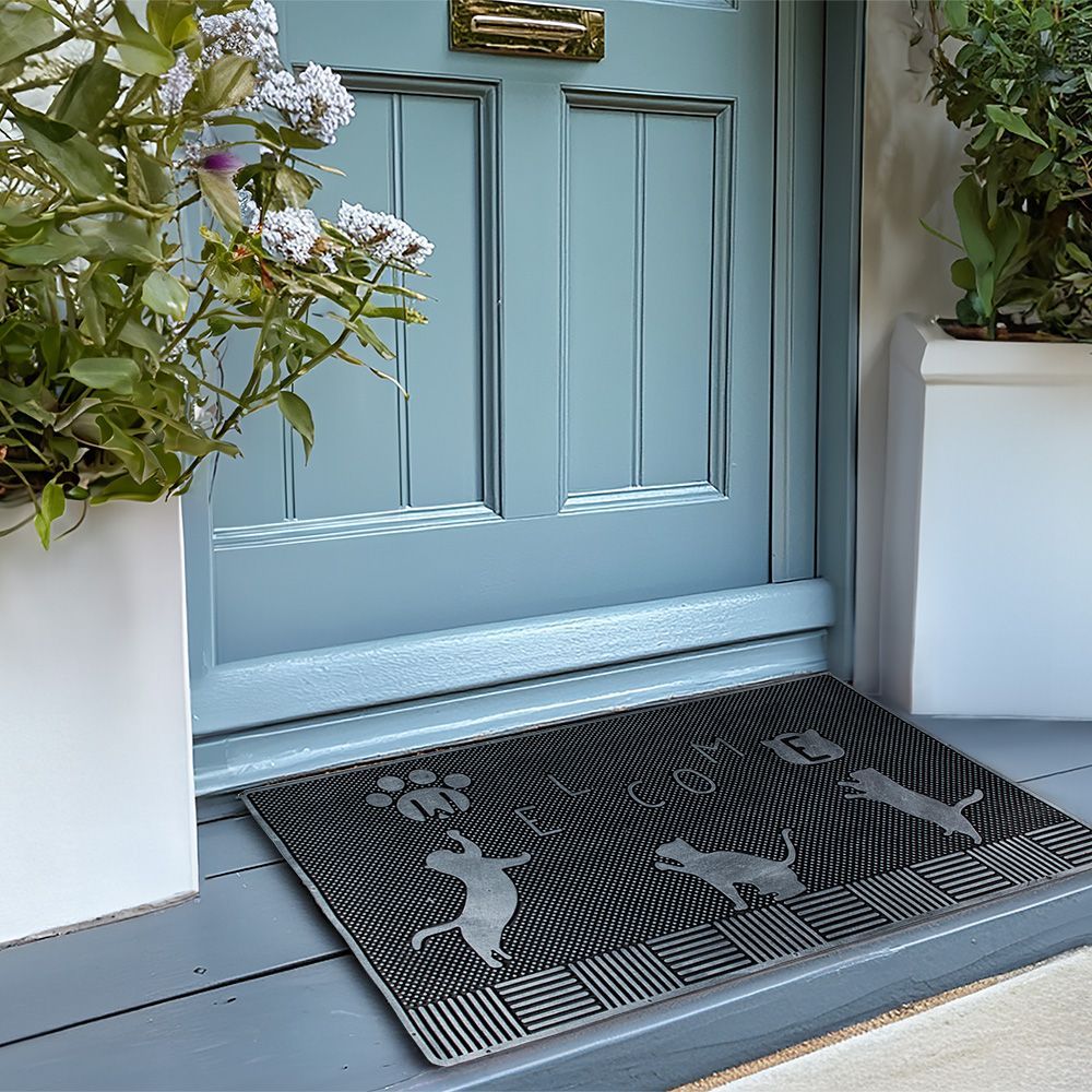 Clayre & Eef Clayre & Eef Fußmatte 75x45 cm Schwarz Gummi Katzen (Gr. 75x45x1 cm)