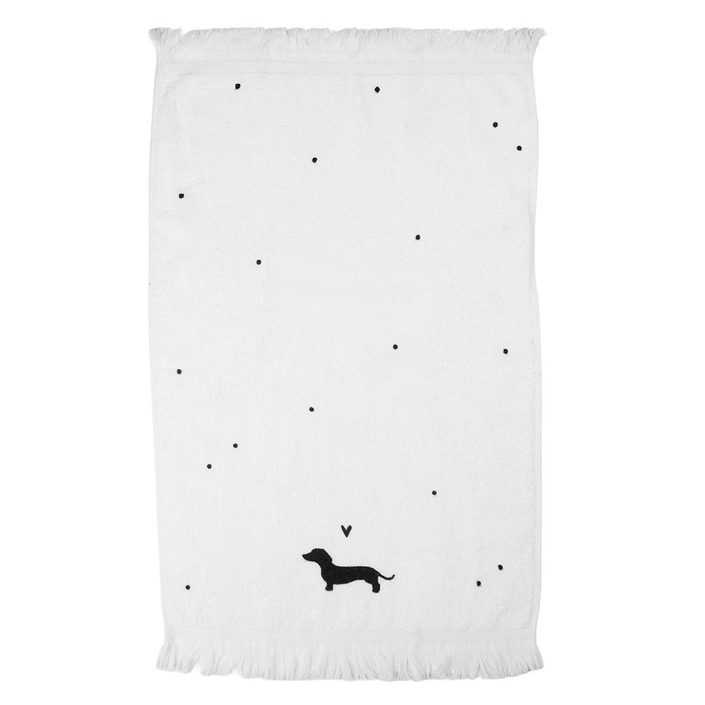 Clayre & Eef Clayre & Eef Gästehandtuch 40x66 cm Weiß Baumwolle Dackel (Gr. 40x66 cm)