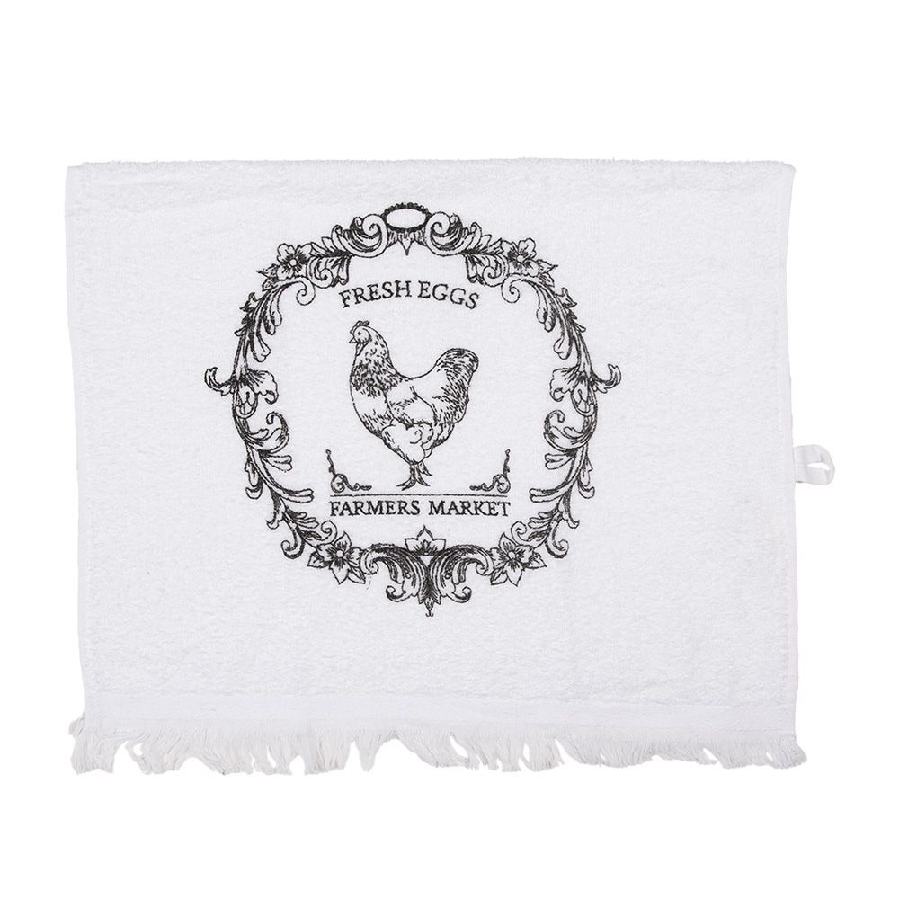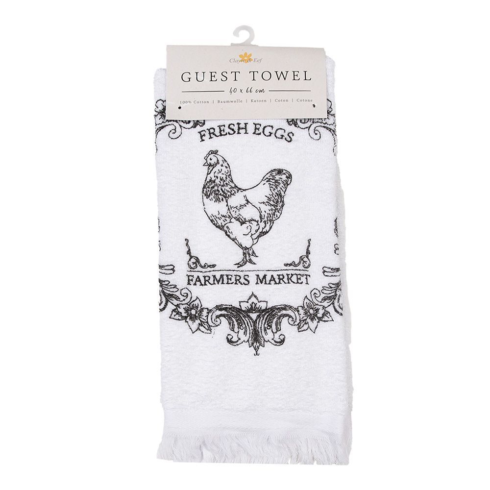 Clayre & Eef Clayre & Eef Gästehandtuch 40x66 cm Weiß Baumwolle Hahn (Gr. 40x66 cm)