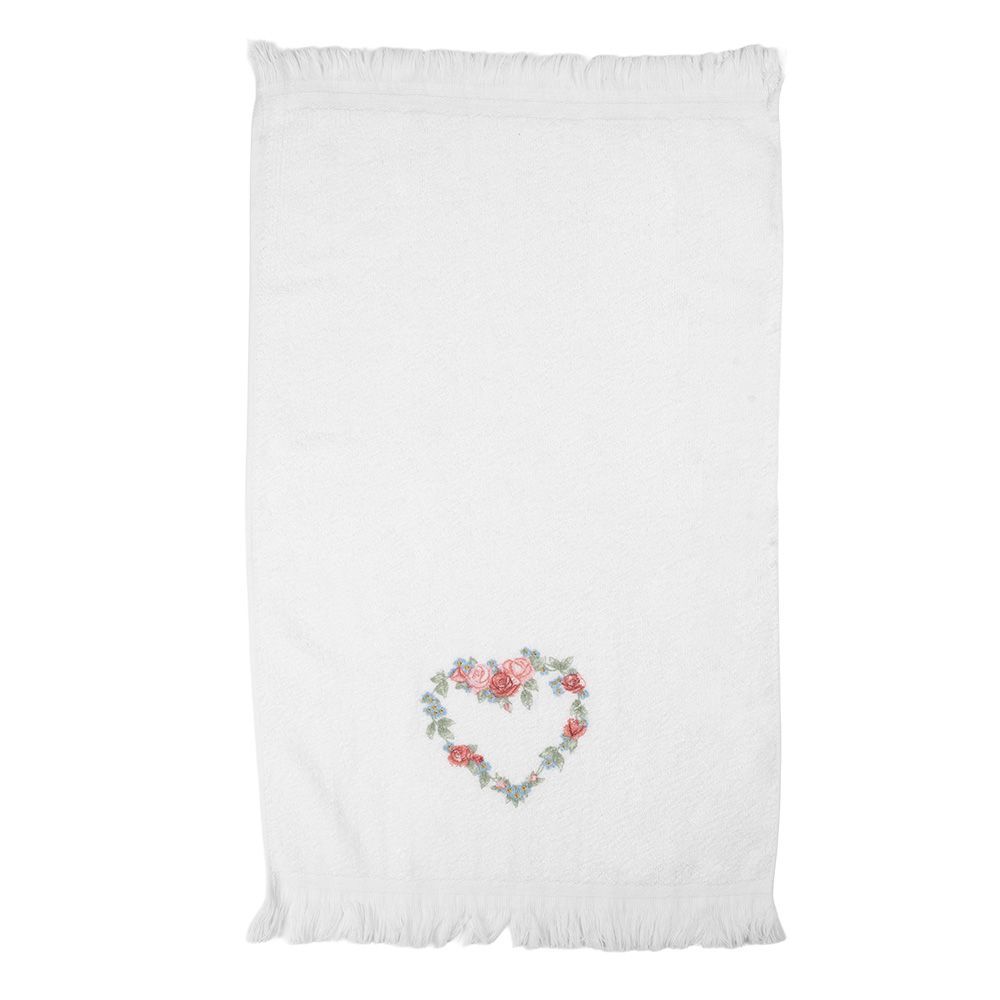 Clayre & Eef Clayre & Eef Gästehandtuch 40x66 cm Weiß Baumwolle Herz (Gr. 40x66 cm)