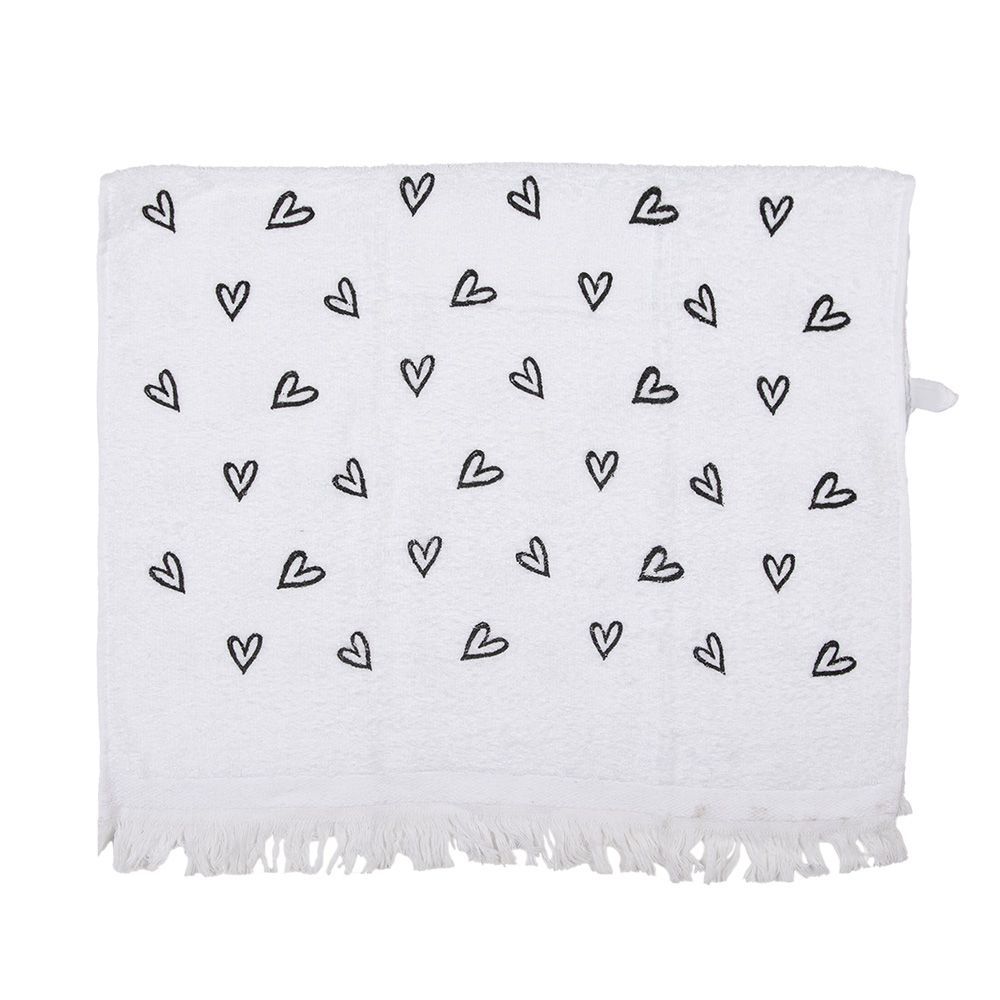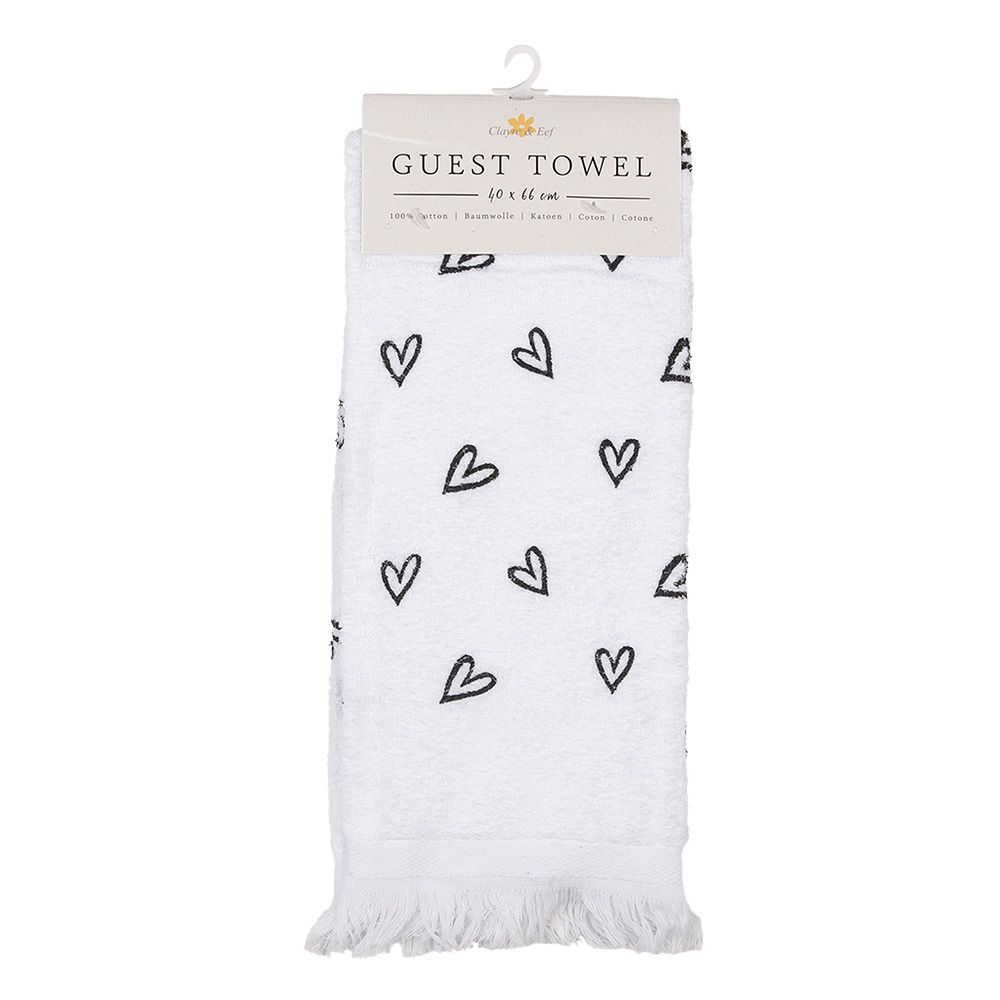 Clayre & Eef Clayre & Eef Gästehandtuch 40x66 cm Weiß Baumwolle Herzen (Gr. 40x66 cm)