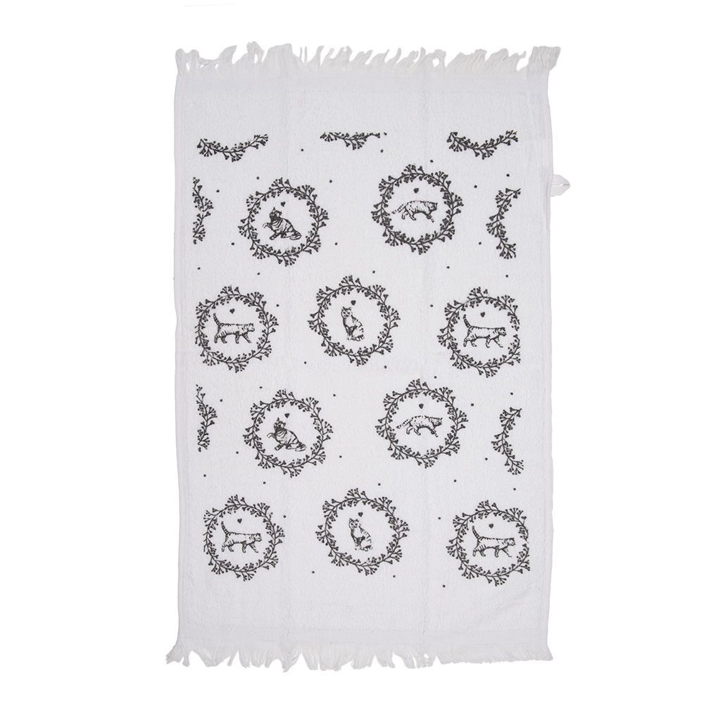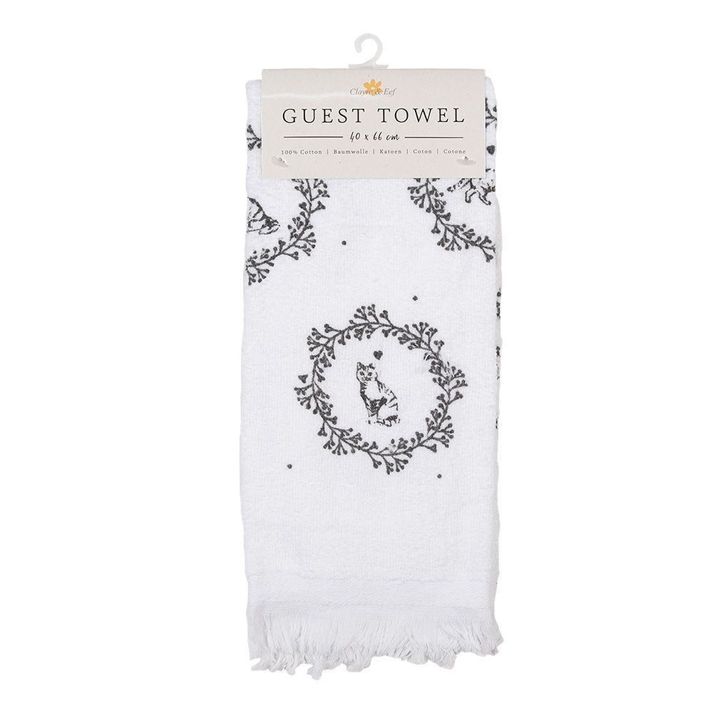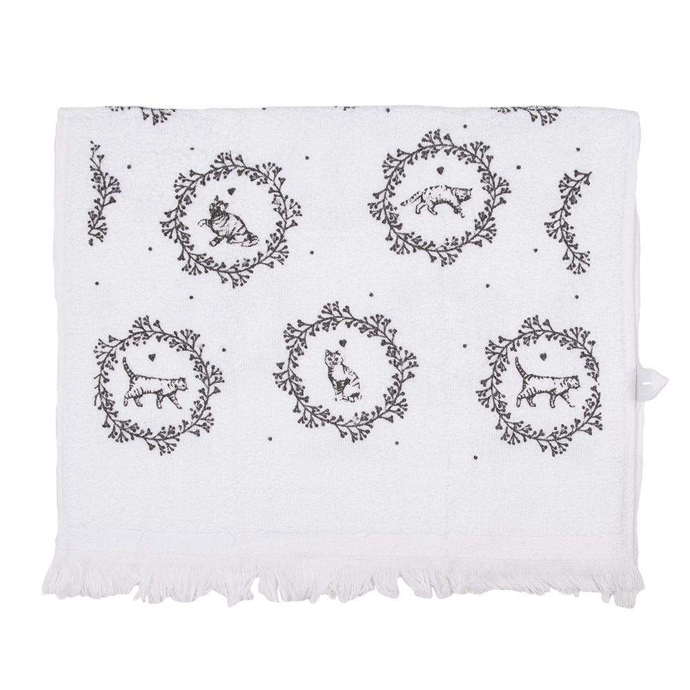 Clayre & Eef Clayre & Eef Gästehandtuch 40x66 cm Weiß Baumwolle Katze (Gr. 40x66 cm)