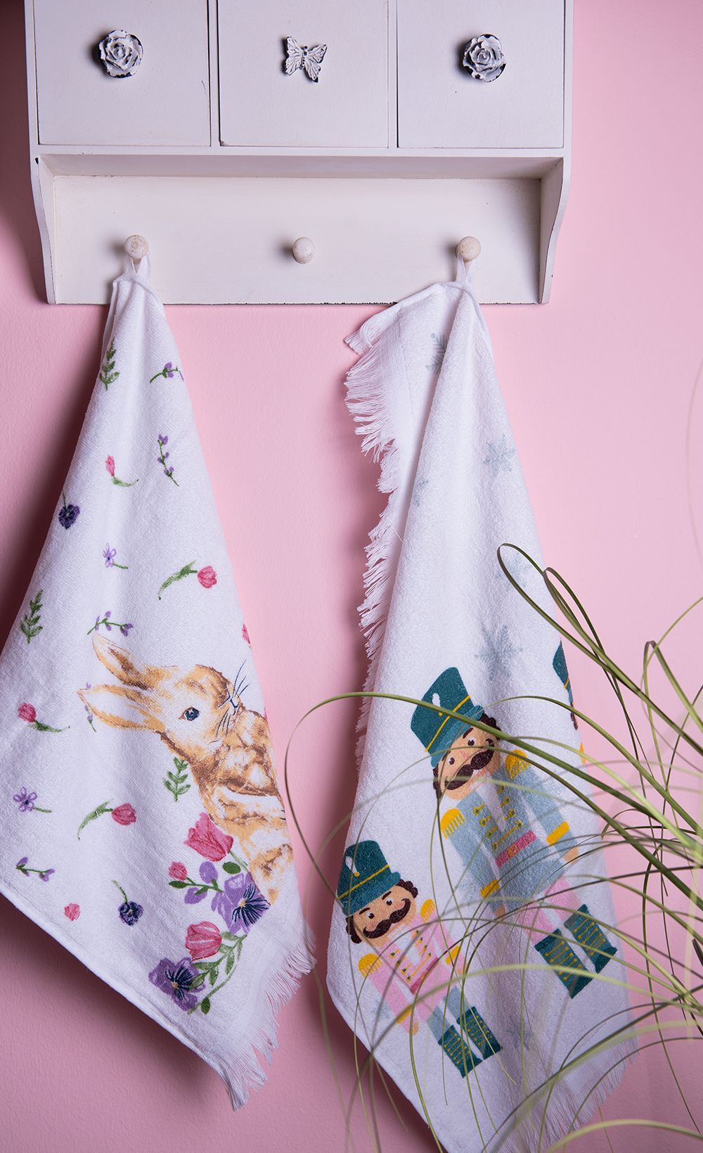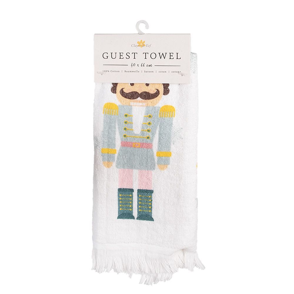 Clayre & Eef Clayre & Eef Gästehandtuch 40x66 cm Weiß Blau Baumwolle Nussknacker (Gr. 40x66 cm)