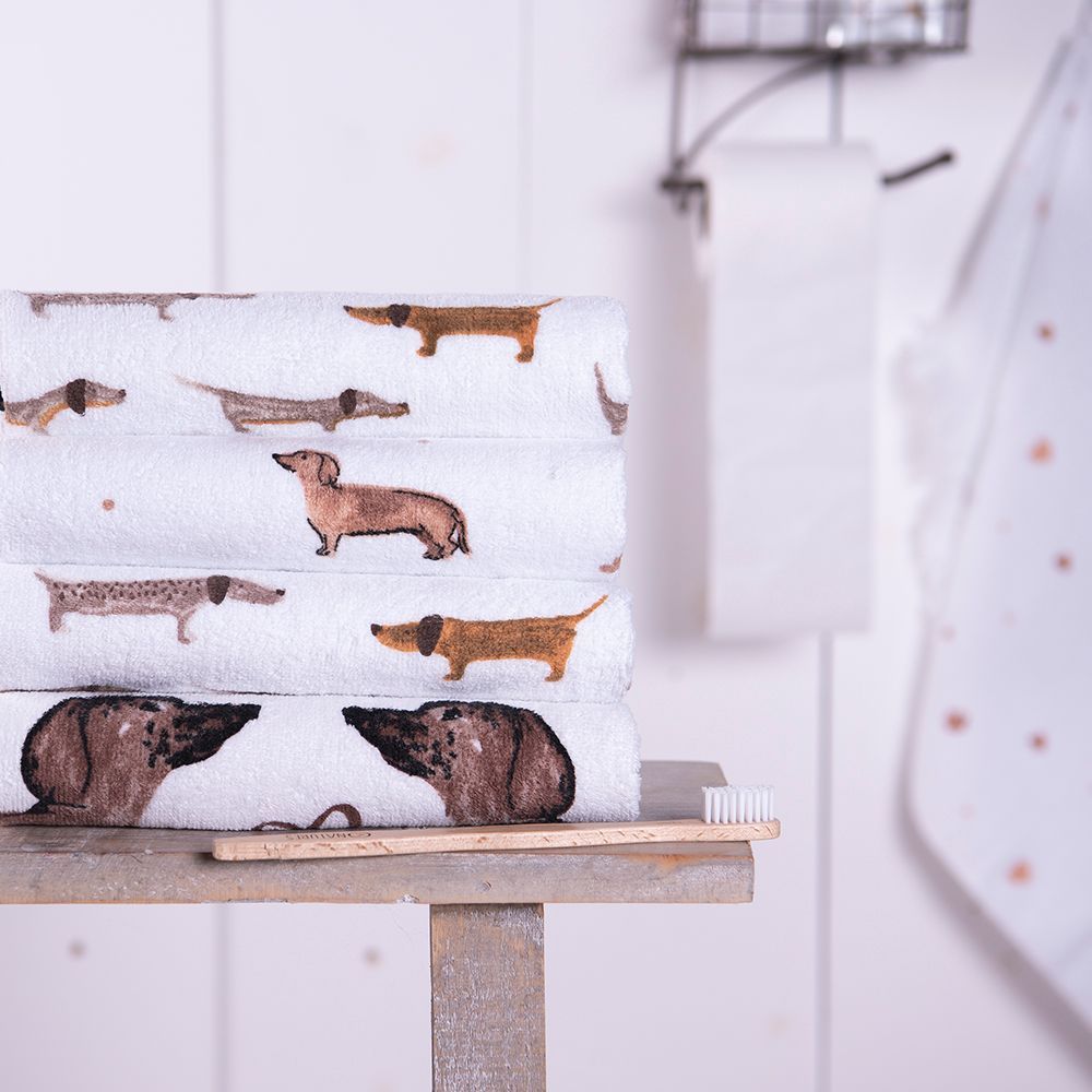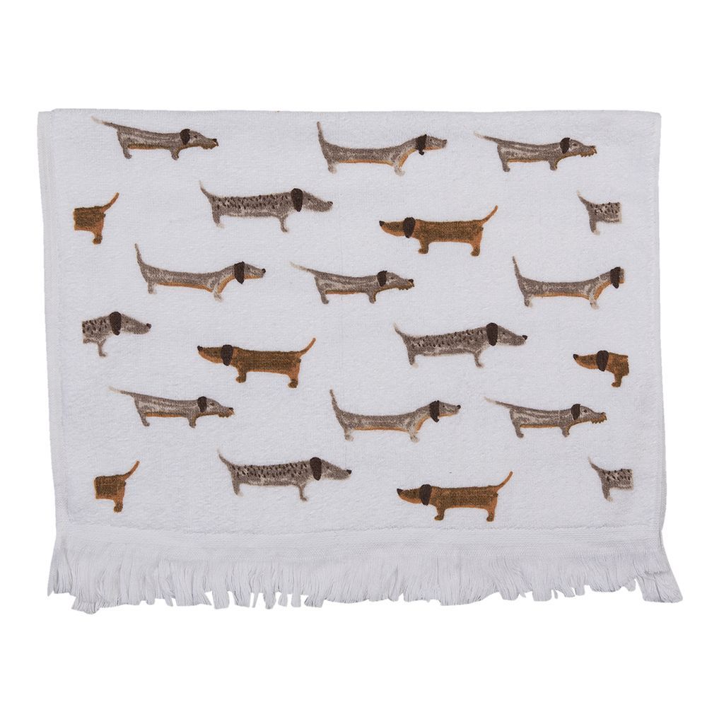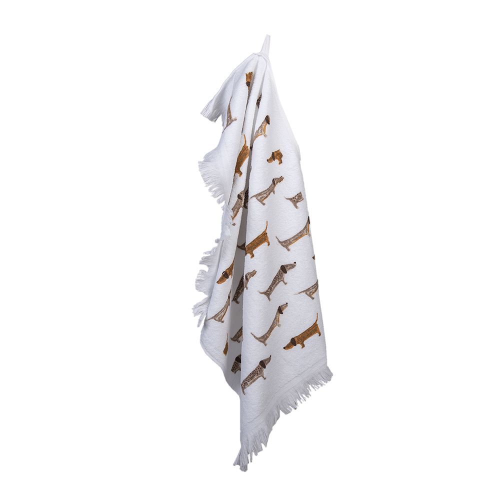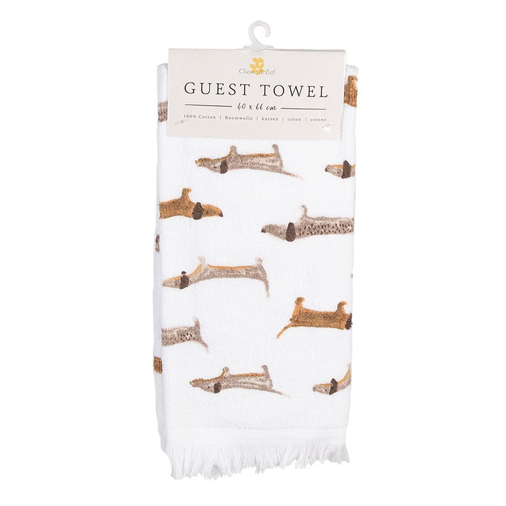 Clayre & Eef Clayre & Eef Gästehandtuch 40x66 cm Weiß Braun Baumwolle Hunde (Gr. 40x66 cm)