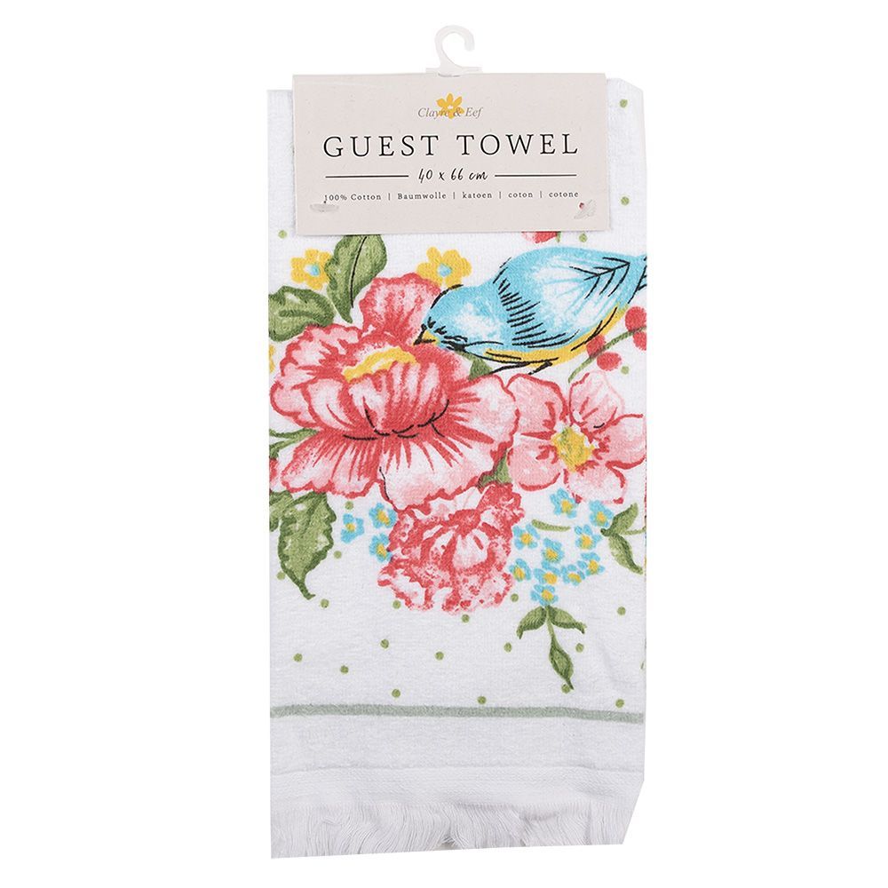 Clayre & Eef Clayre & Eef Gästehandtuch 40x66 cm Weiß Rosa Baumwolle Blumen (Gr. 40x66 cm)