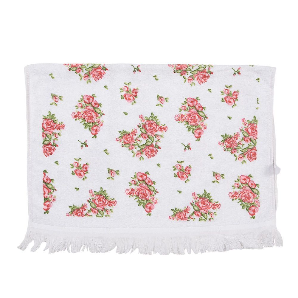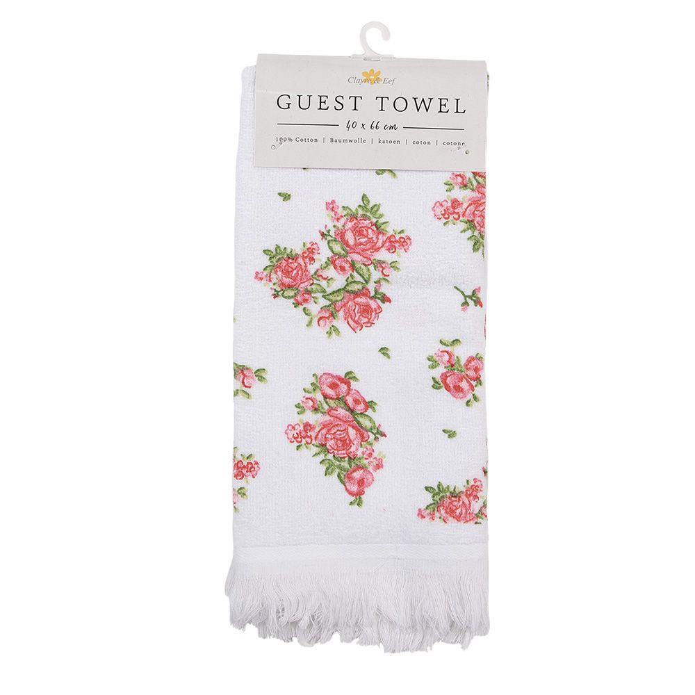 Clayre & Eef Clayre & Eef Gästehandtuch 40x66 cm Weiß Rosa Baumwolle Rosen (Gr. 40x66 cm)