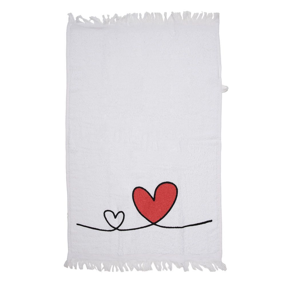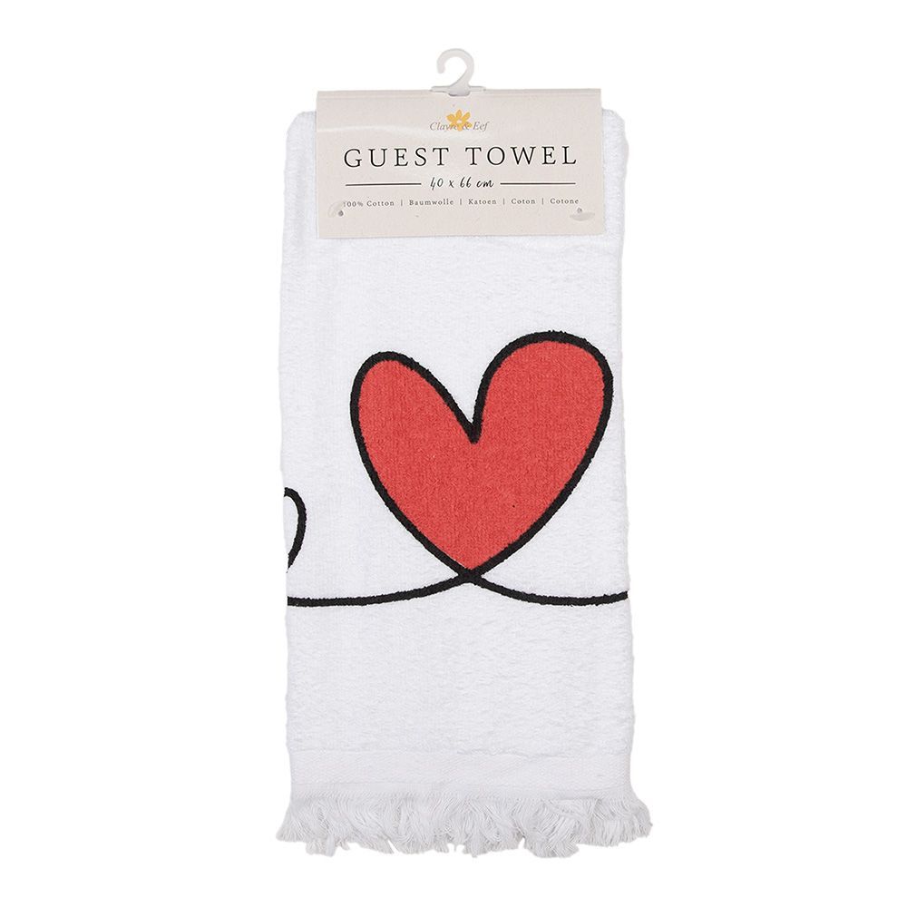 Clayre & Eef Clayre & Eef Gästehandtuch 40x66 cm Weiß Rot Baumwolle Herz (Gr. 40x66 cm)