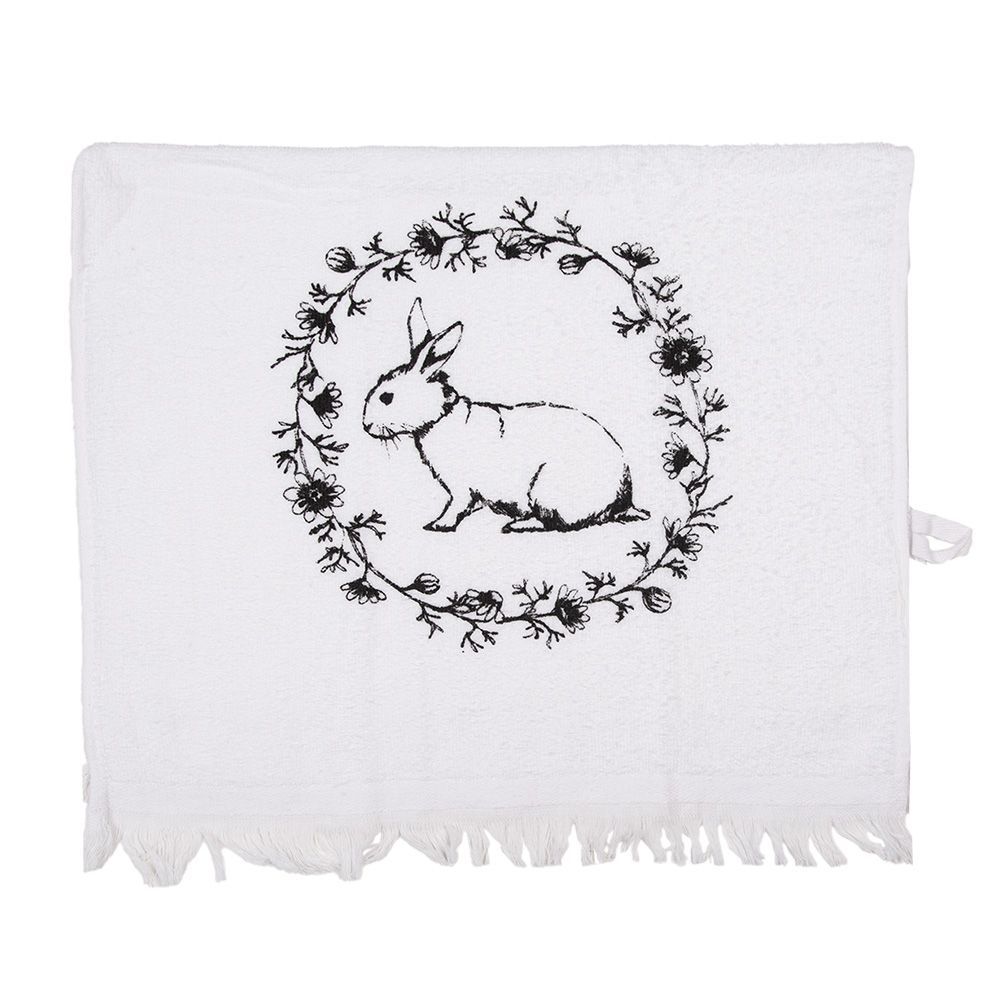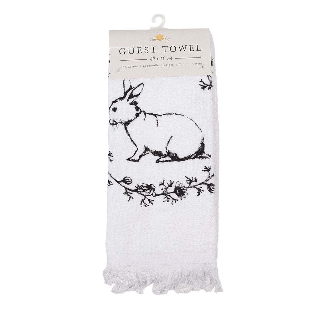 Clayre & Eef Clayre & Eef Gästehandtuch 40x66 cm Weiß Schwarz Baumwolle Kaninchen Blumen