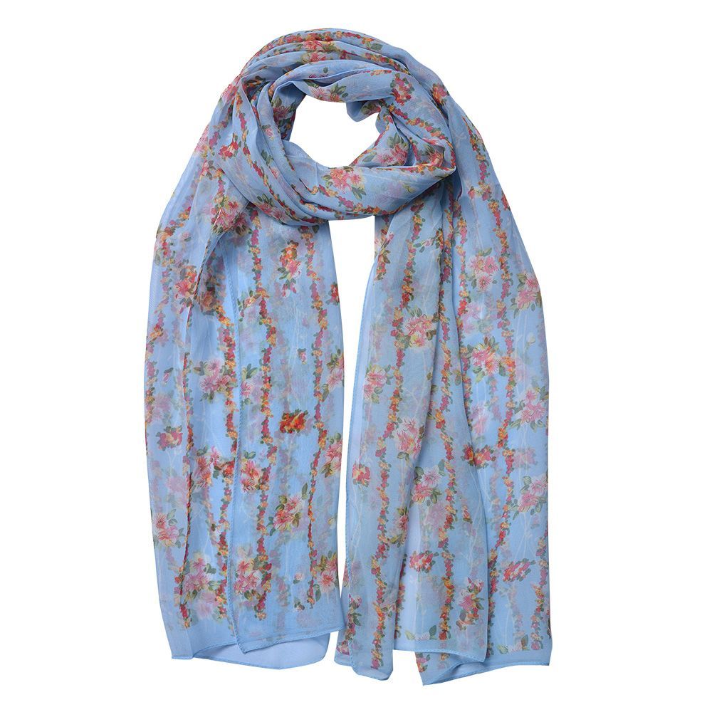 Clayre & Eef Gemusterter Damenschal 50x160 cm Blau Synthetisch Blumen