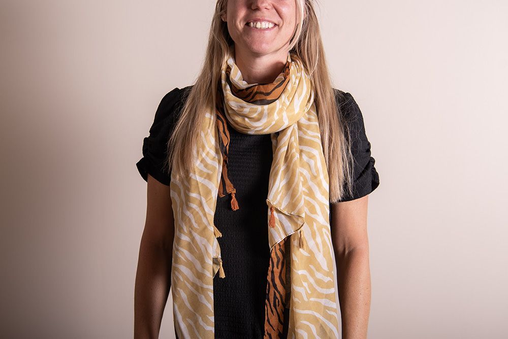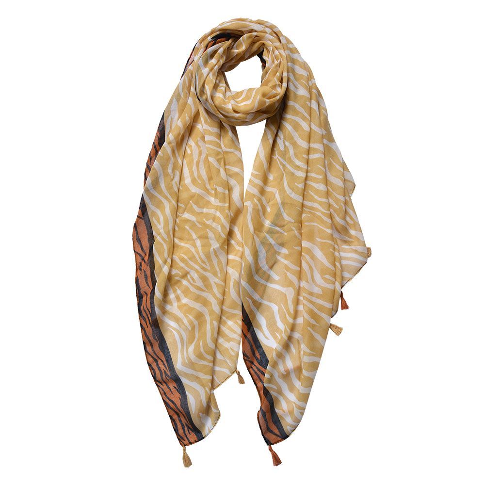 Clayre & Eef Gemusterter Damenschal 90x180 cm Gelb Orange Synthetisch
