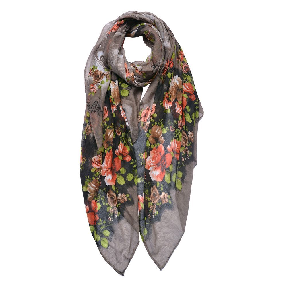 Clayre & Eef Gemusterter Damenschal 90x180 cm Grau Rot Synthetisch Rosen