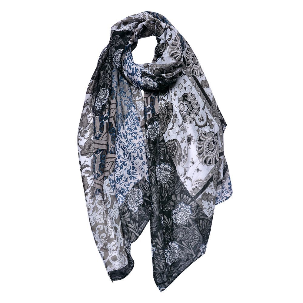 Clayre & Eef Gemusterter Damenschal 90x180 cm Schwarz Grau Synthetisch