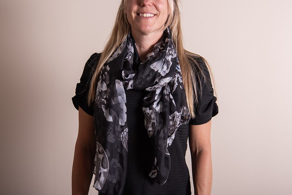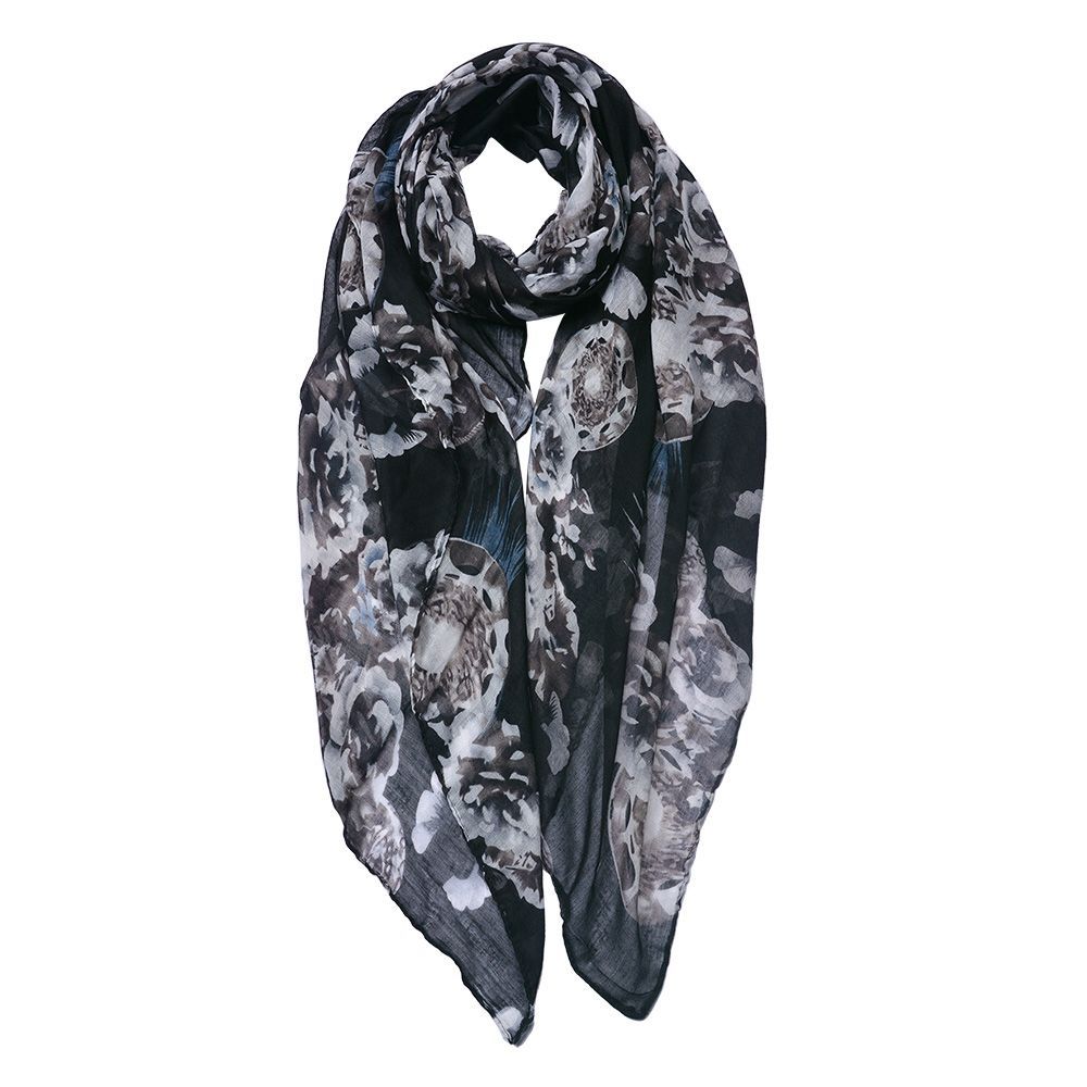 Clayre & Eef Gemusterter Damenschal 90x180 cm Schwarz Grau Synthetisch Blumen