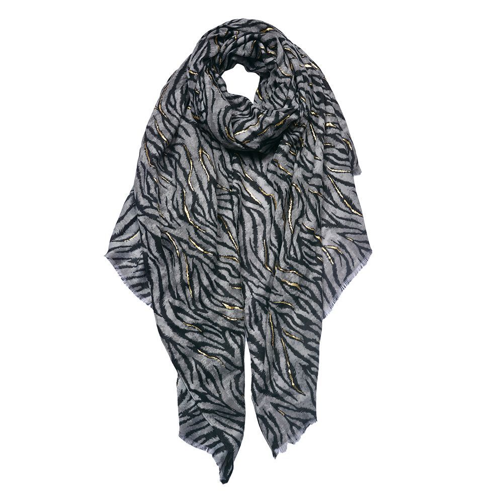 Clayre & Eef Gemusterter Damenschal 90x180 cm Schwarz Weiß Synthetisch