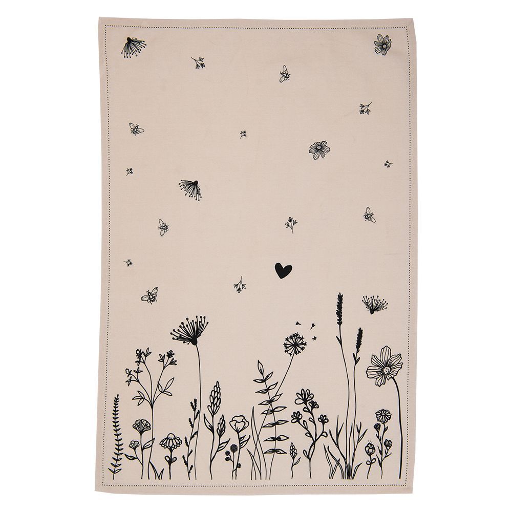 Clayre & Eef Clayre & Eef Geschirrtuch 50x70 cm Beige Schwarz Baumwolle Blumen (Gr. 50x70 cm)