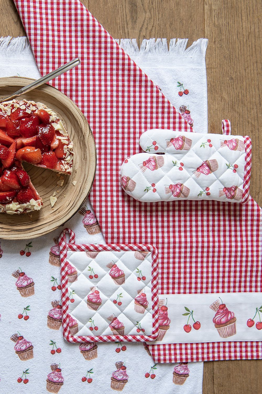 Clayre & Eef Clayre & Eef Geschirrtuch 50x70 cm Rot Weiß Baumwolle Cupcakes (Gr. 50x70 cm)