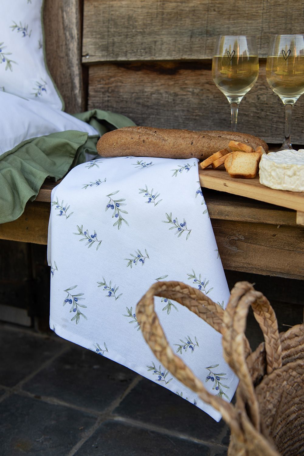 Clayre & Eef Clayre & Eef Geschirrtuch 50x70 cm Weiß Baumwolle Oliven (Gr. 50x70 cm)