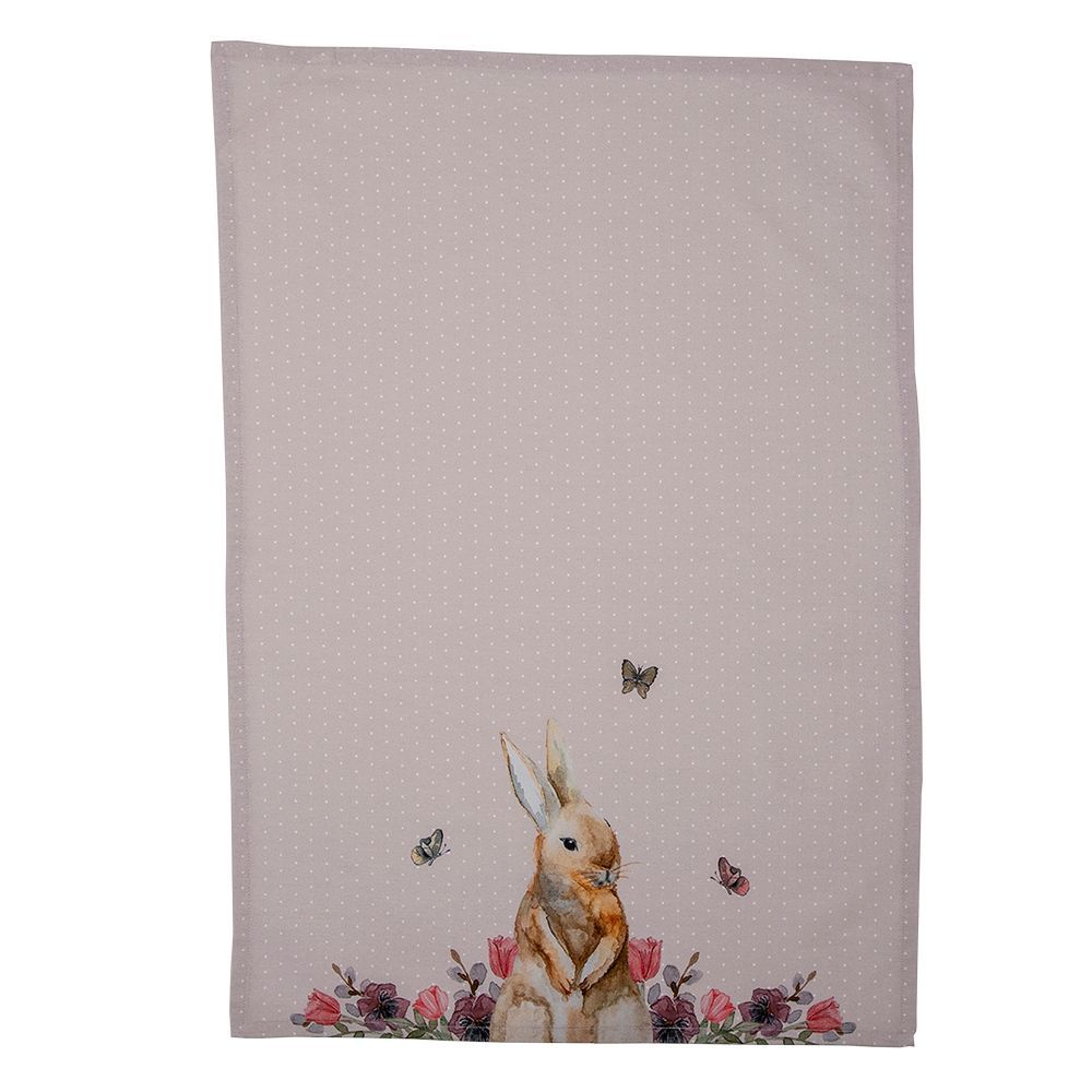 Clayre & Eef Clayre & Eef Geschirrtuch 50x70 cm Weiß Rosa Baumwolle Kaninchen Blumen