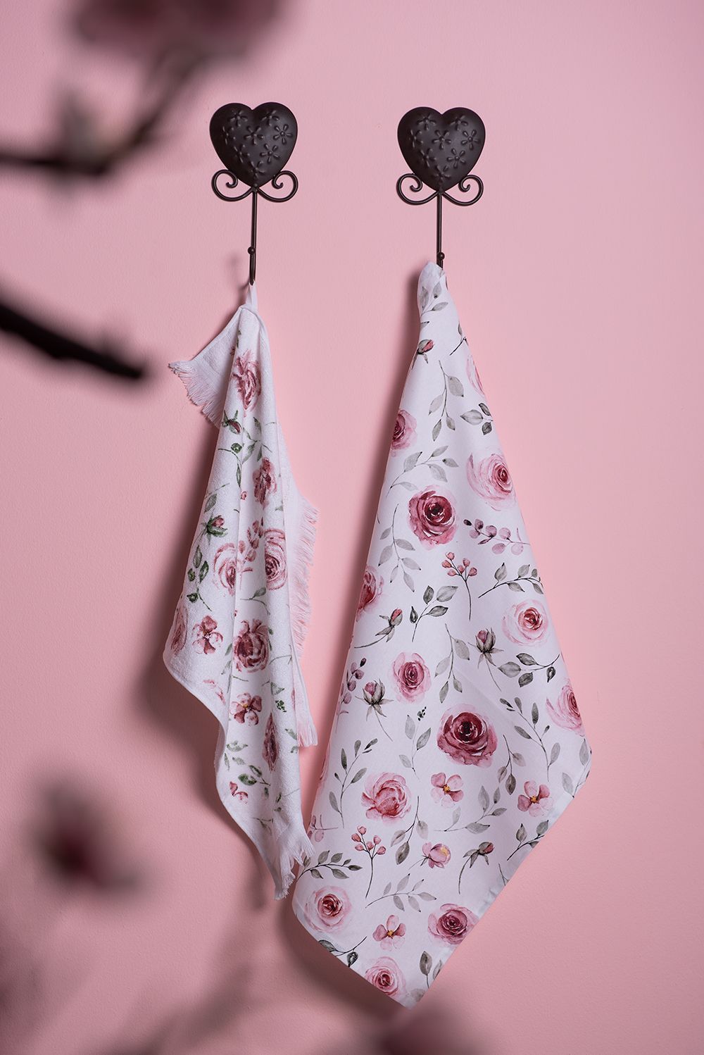Clayre & Eef Clayre & Eef Geschirrtuch 50x70 cm Weiß Rosa Baumwolle Rosen (Gr. 50x70 cm)