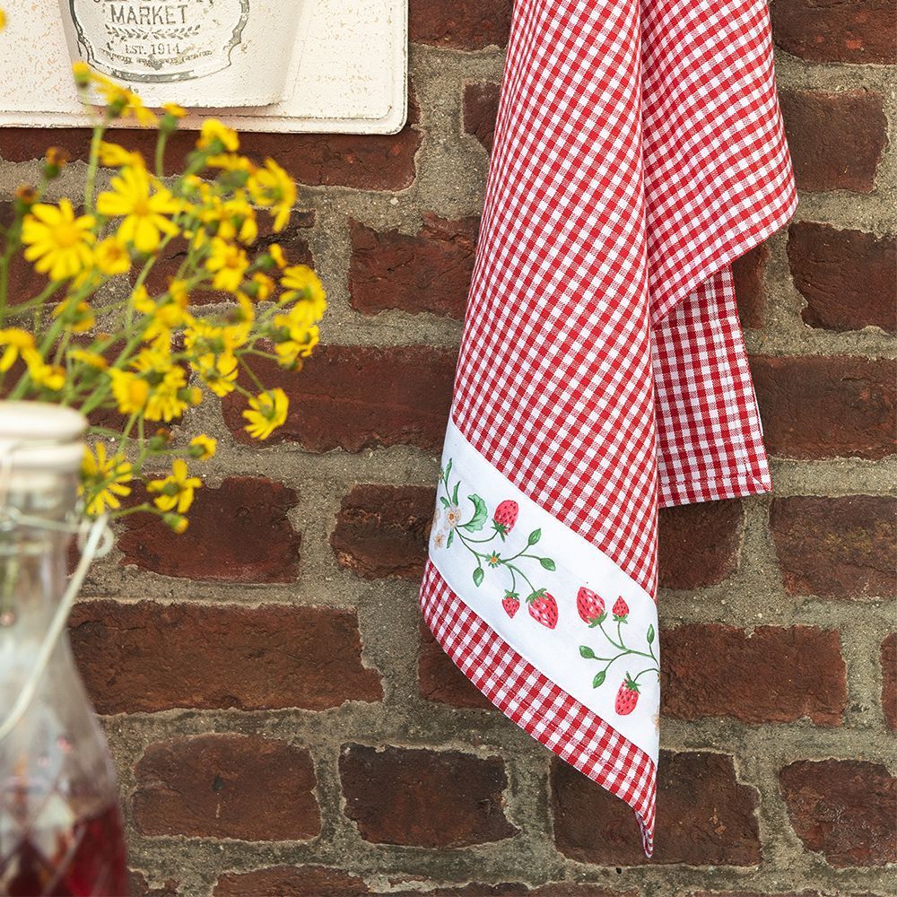 Clayre & Eef Clayre & Eef Geschirrtuch 50x70 cm Weiß Rot Baumwolle Erdbeeren (Gr. 50x70 cm)