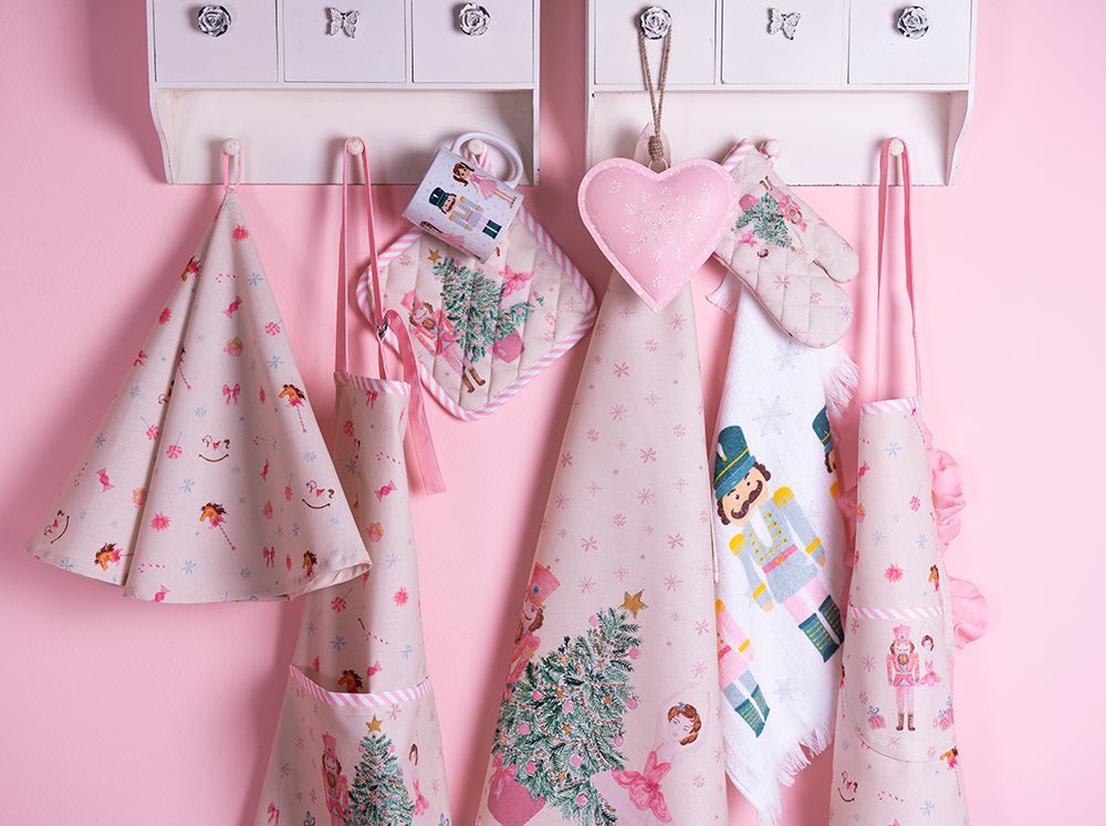 Clayre & Eef Clayre & Eef Geschirrtuch Ø 80 cm Beige Rosa Baumwolle Schaukelpferd (Gr. Ø 80 cm)