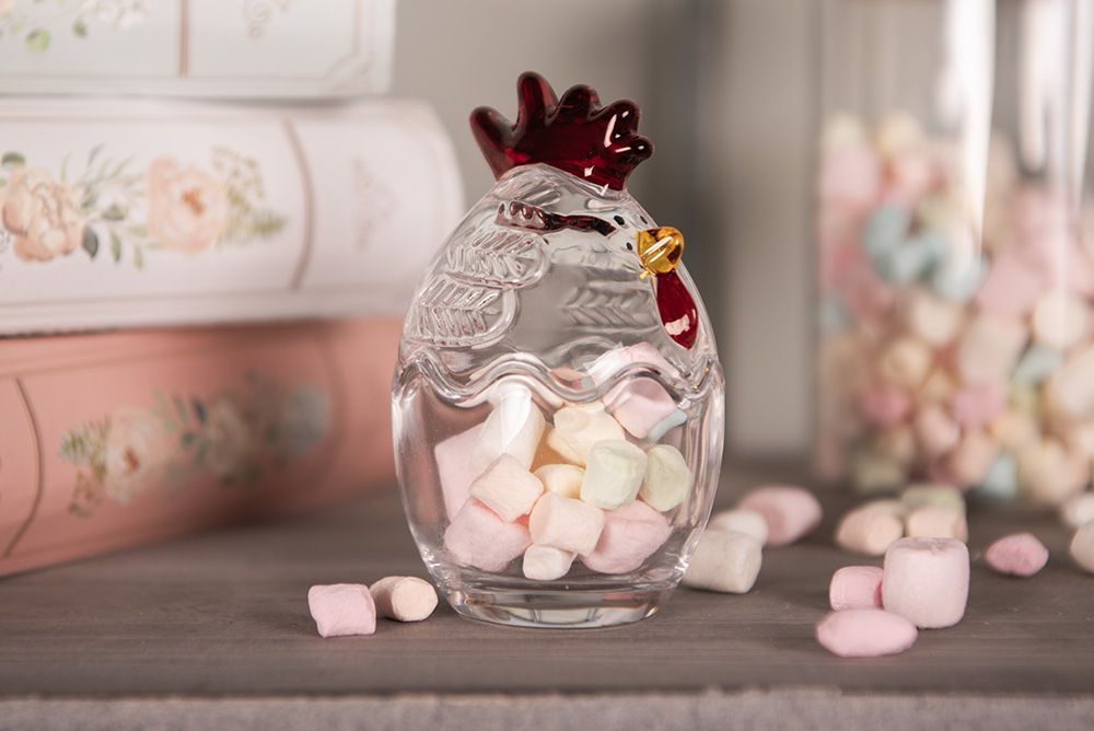 Clayre & Eef Clayre & Eef Glastopf Huhn Ø 6x9 cm Transparant Glas (Gr. Ø 6x9 cm)
