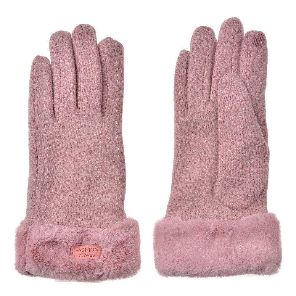 Clayre & Eef Clayre & Eef Handschuhe mit Kunstpelz 9x23 cm Rosa Polyester