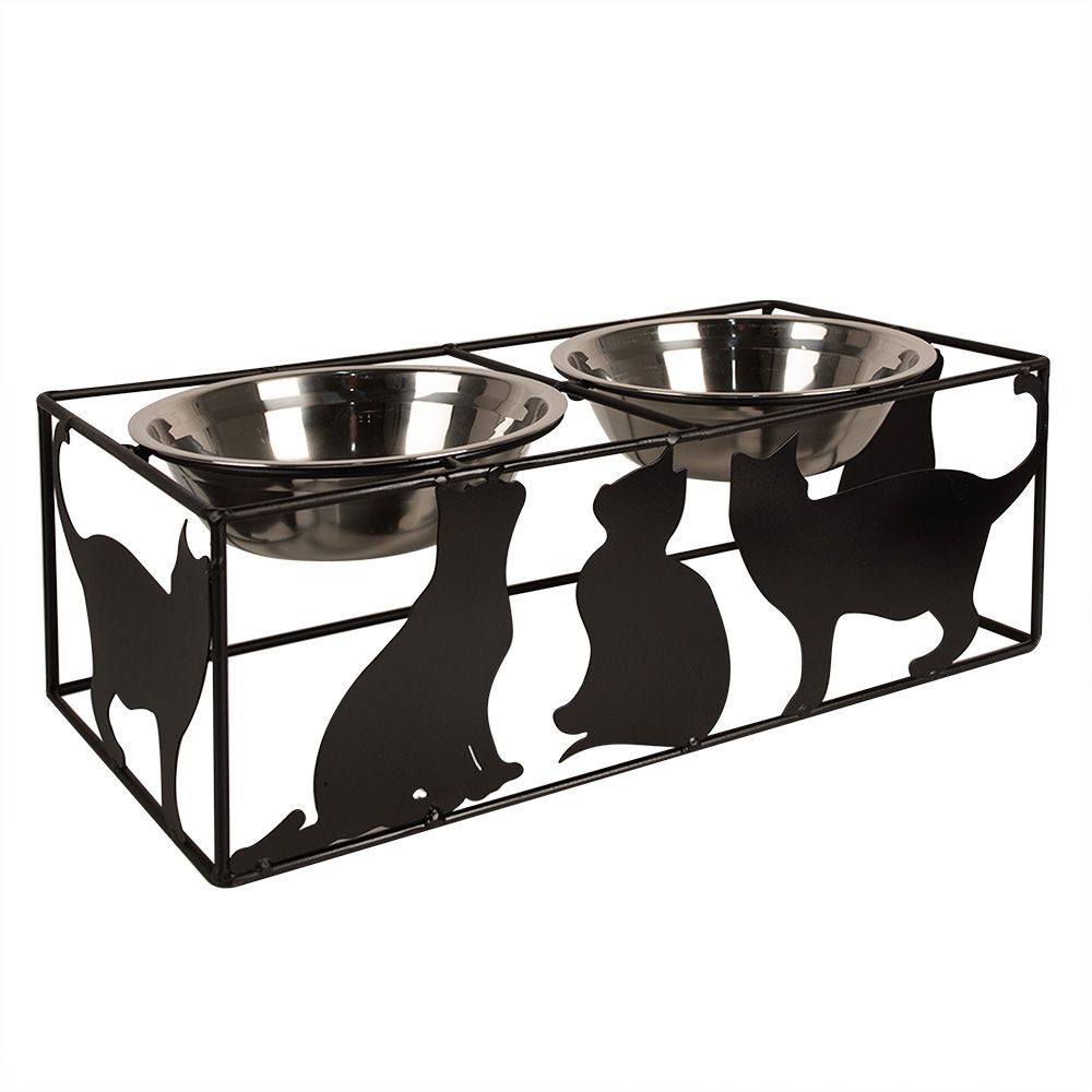 Clayre & Eef Clayre & Eef Katzennapf 2x500 ml Schwarz Metall Katzen (Gr. 38x20x14 cm / 2x500 ml)