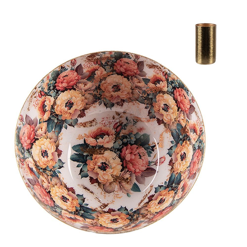 Clayre & Eef Clayre & Eef Kerzenständer Ø 14x6 cm Goldfarbig Weiß Metall Blumen (Gr. Ø 14x6 cm)