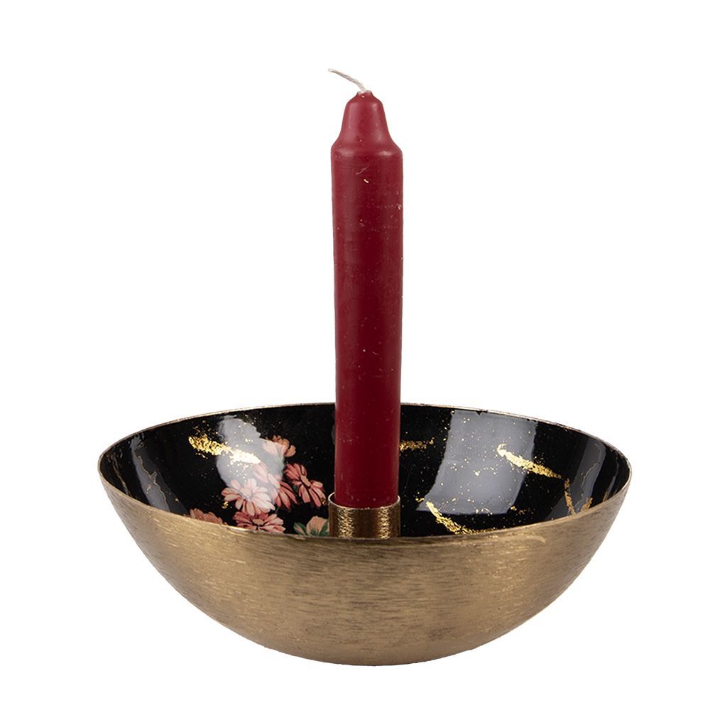 Clayre & Eef Clayre & Eef Kerzenständer Ø 17x6 cm Goldfarbig Schwarz Metall Blumen (Gr. Ø 17x6 cm)