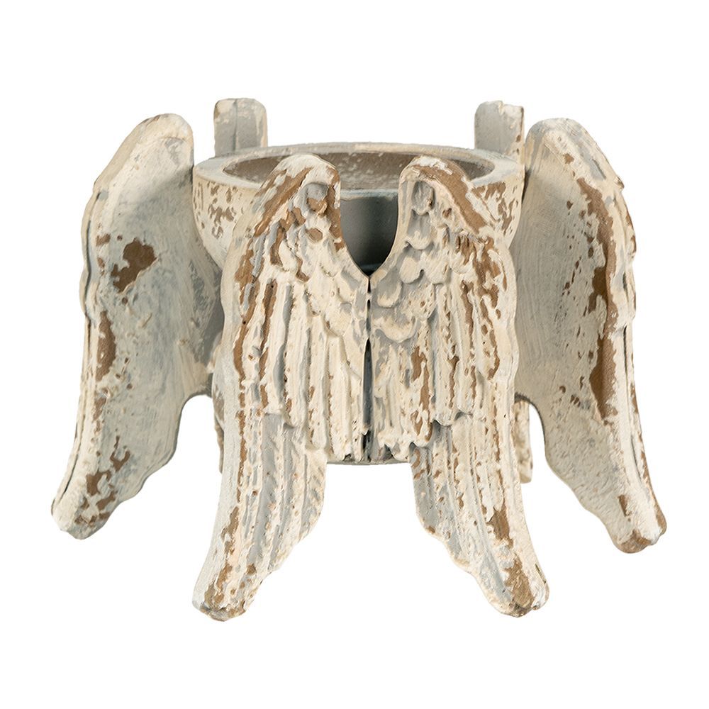 Clayre & Eef Clayre & Eef Kerzenständer Flügel 21x19x15 cm Grau Beige Holz (Gr. 21x19x15 cm)