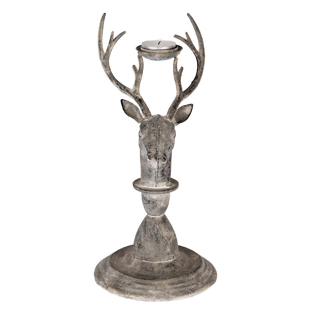 Clayre & Eef Clayre & Eef Kerzenständer Hirsch 17x14x30 cm Grau Metall (Gr. 17x14x30 cm)
