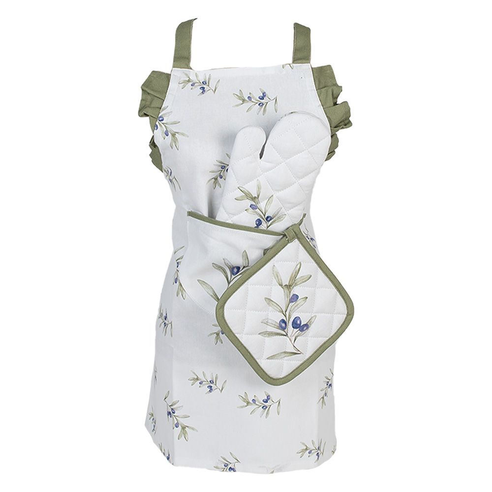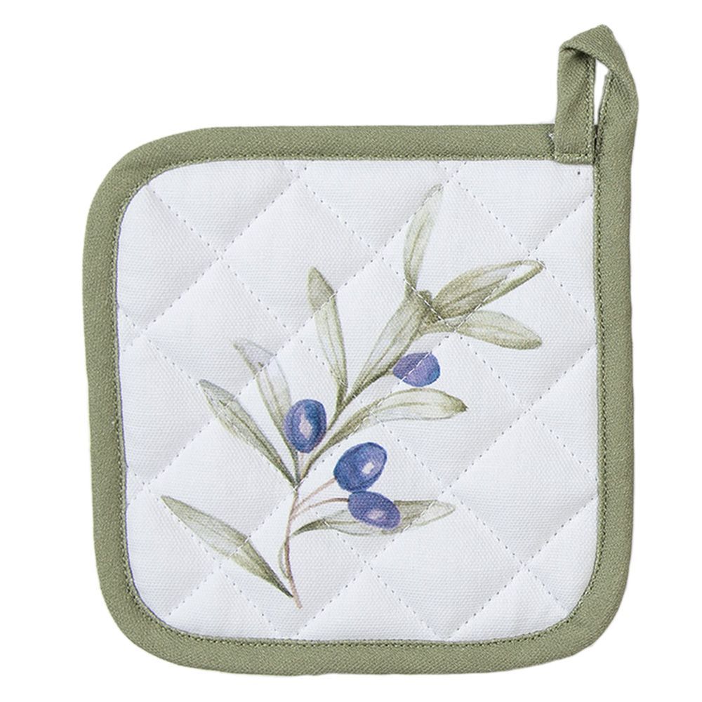 Clayre & Eef Clayre & Eef Kinder Topflappen 16x16 cm Weiß Baumwolle Oliven (Gr. 16x16 cm)