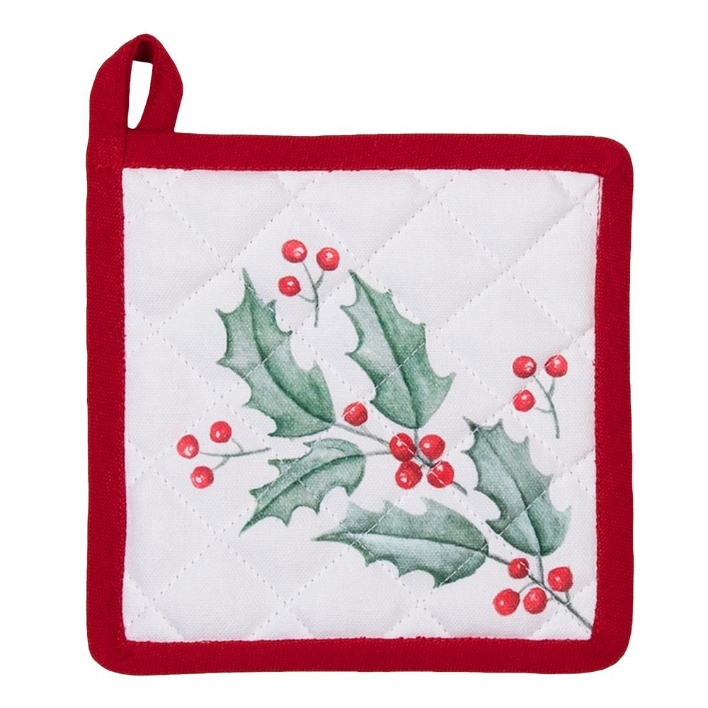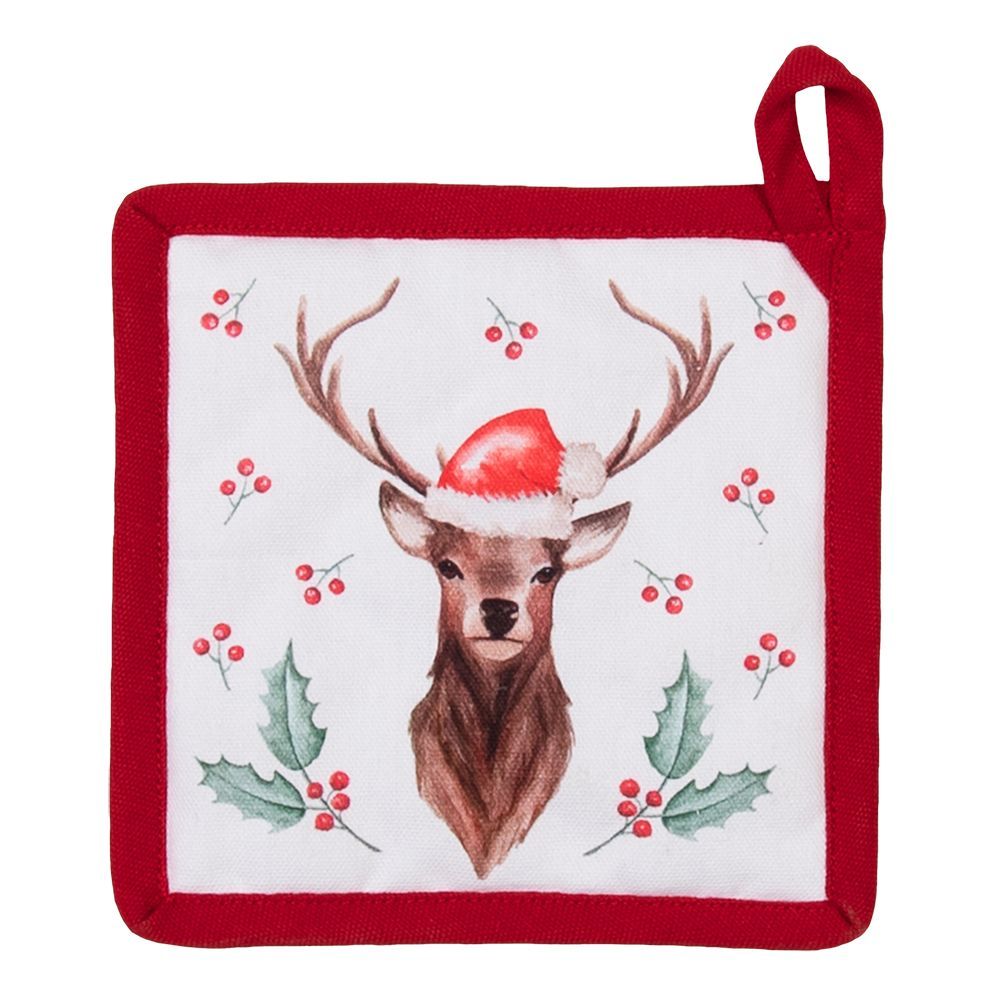 Clayre & Eef Clayre & Eef Kinder Topflappen 16x16 cm Weiß Rot Baumwolle Hirsch und (Gr. 16x16 cm)