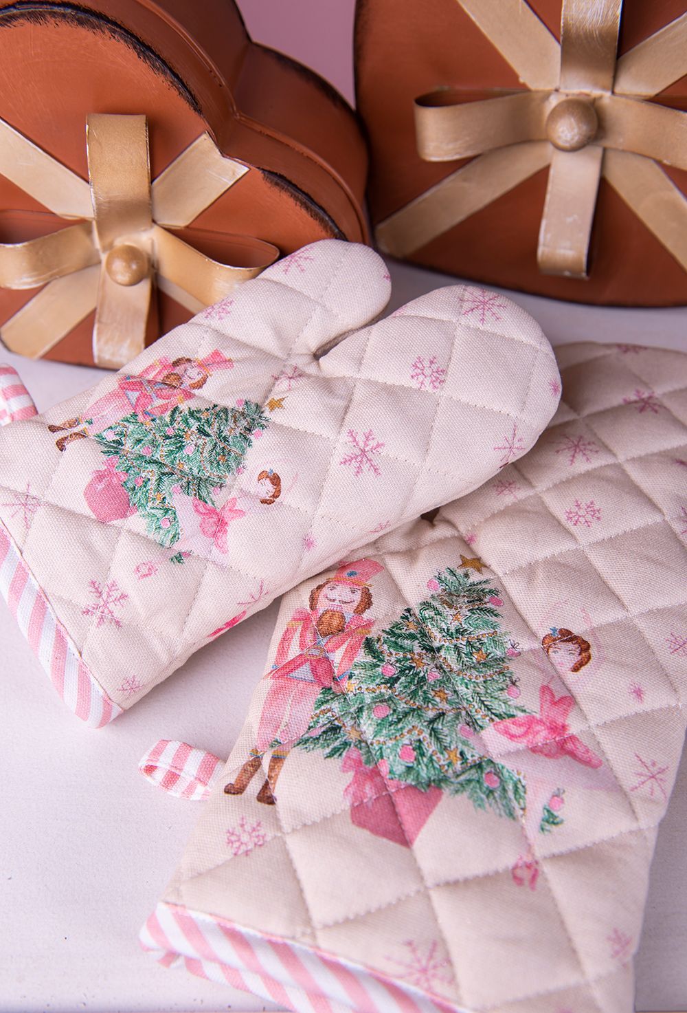 Clayre & Eef Clayre & Eef Kinderofenhandschuh 12x21 cm Beige Rosa Baumwolle Nussknacker