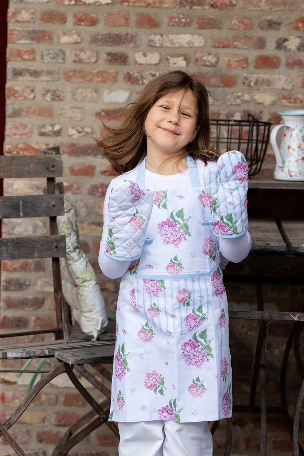 Clayre & Eef Clayre & Eef Kinderofenhandschuh 12x21 cm Blau Rosa Baumwolle Hortensie