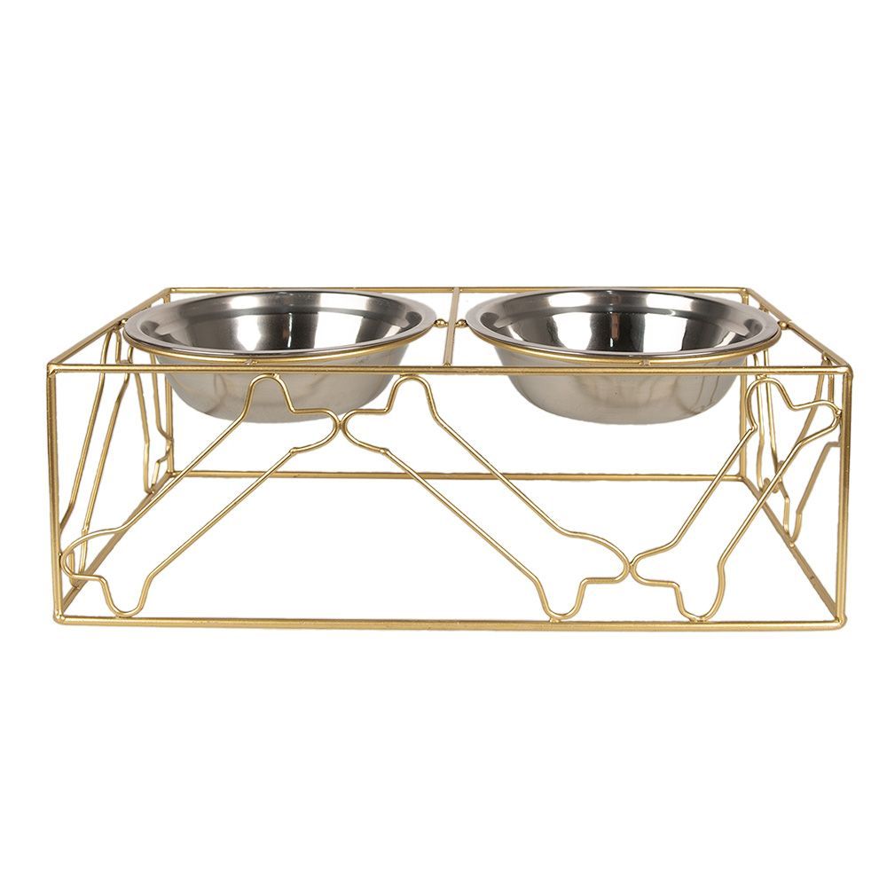 Clayre & Eef Clayre & Eef Krippenhund 2x500 ml Goldfarbig Metall Knochen zum Kauen