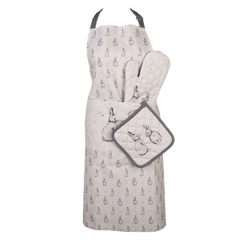 Clayre & Eef Clayre & Eef Küchenschürze 70x85 cm Beige Grau Baumwolle Kaninchen (Gr. 70x85 cm)