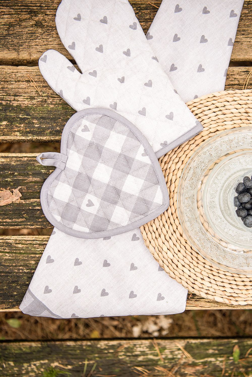 Clayre & Eef Clayre & Eef Küchenschürze 70x85 cm Grau Beige Baumwolle Herzen (Gr. 70x85 cm)