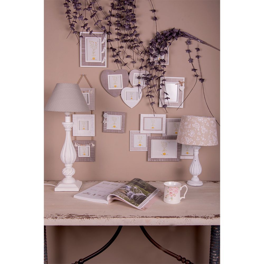 Clayre & Eef Clayre & Eef Lampenschirm Ø 26x15 cm Grau Weiß Baumwolle Punkte