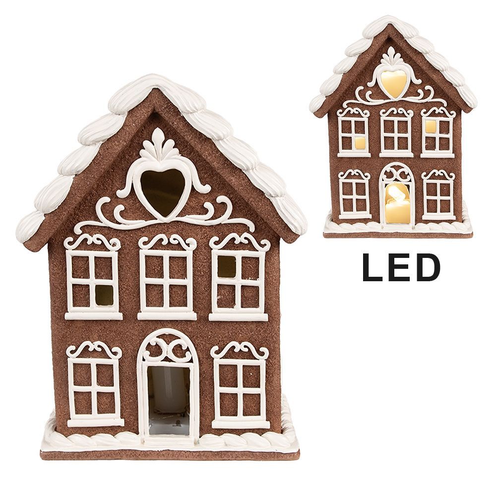 Clayre & Eef Clayre & Eef Lebkuchenhaus mit LED 17x10x22 cm Braun Polyresin (Gr. 17x10x22 cm)