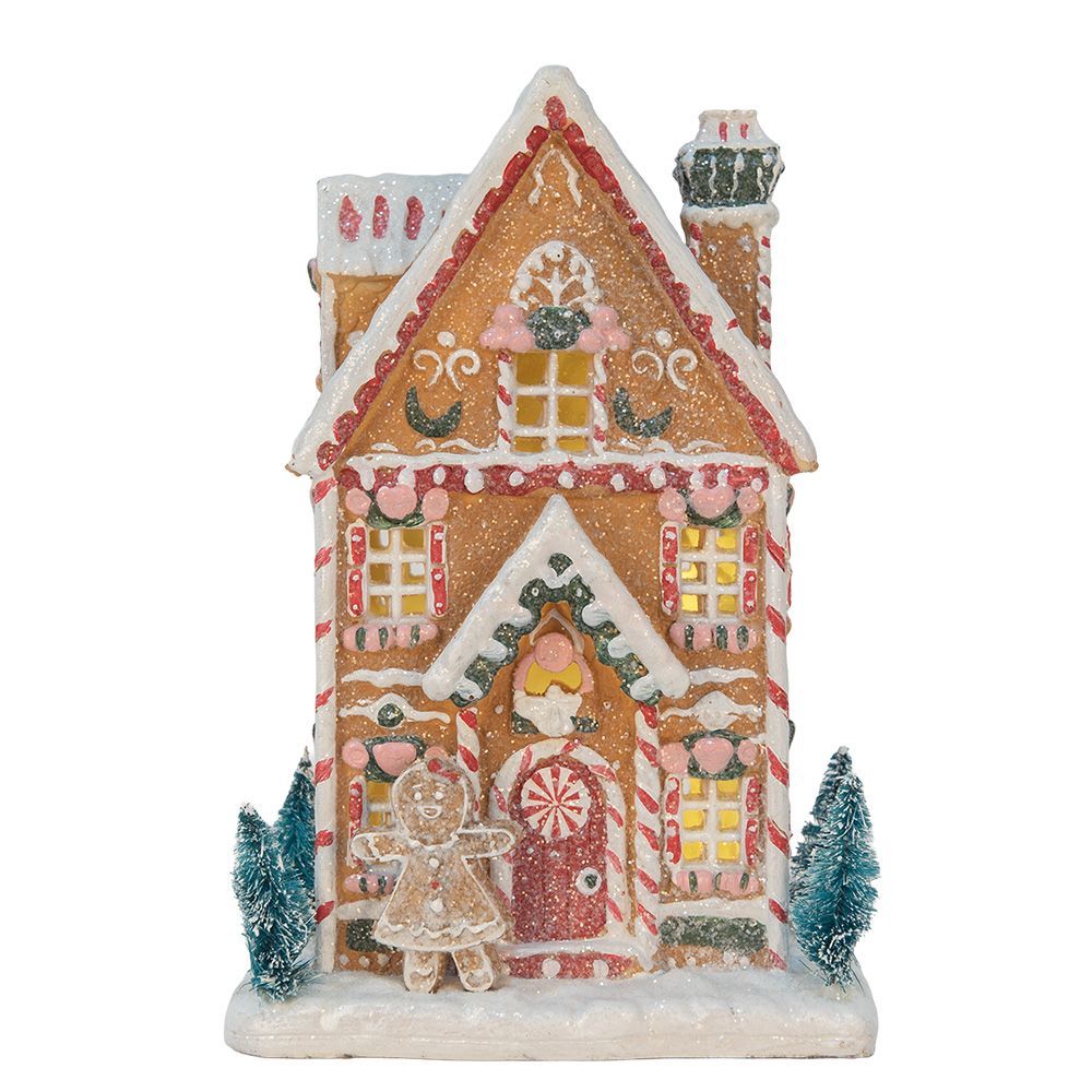 Clayre & Eef Clayre & Eef Lebkuchenhaus mit LED 17x12x25 cm Braun Kunststoff (Gr. 17x12x25 cm)