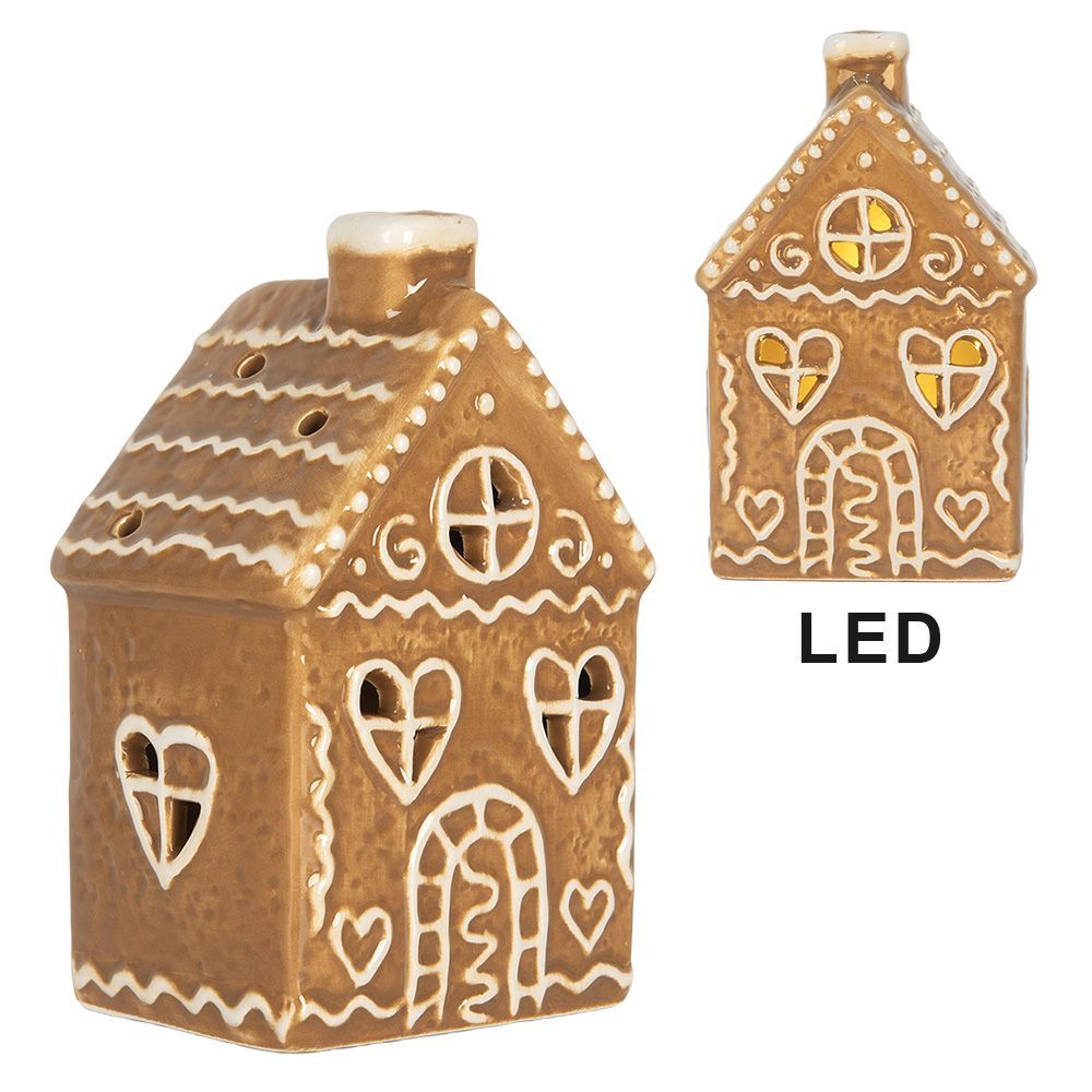 Clayre & Eef Clayre & Eef Lebkuchenhaus mit LED 7x6x12 cm Braun Keramik (Gr. 7x6x12 cm)