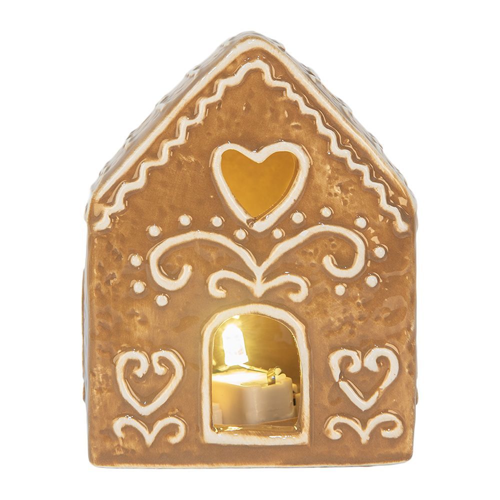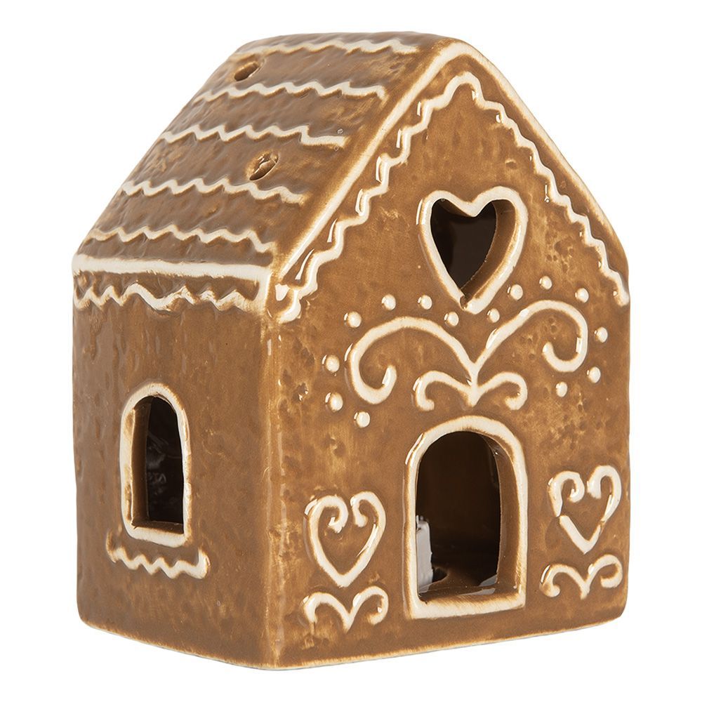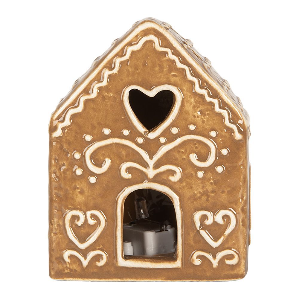 Clayre & Eef Clayre & Eef Lebkuchenhaus mit LED 8x6x10 cm Braun Keramik (Gr. 8x6x10 cm)