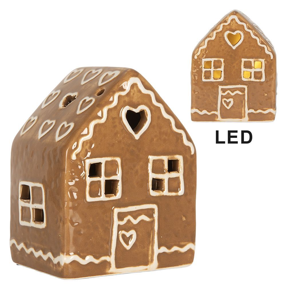 Clayre & Eef Clayre & Eef Lebkuchenhaus mit LED 8x6x10 cm Braun Keramik (Gr. 8x6x10 cm)