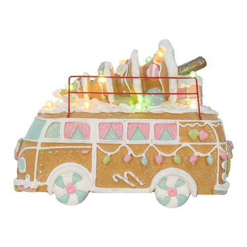 Clayre & Eef Clayre & Eef Lebkuchenhaus mit LED Bus LED 2xAAA Braun Metall